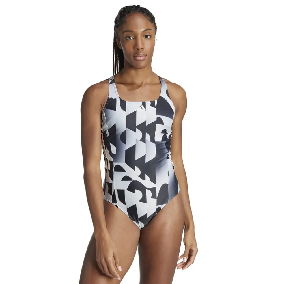 – Featuring a sporty V-back and medium cut are all about freedom of movement. Swimming pools and sun lounges become your runway with the stylish, allover patterned design and iconic branding. Factor in the featured UV protection, and sun-soaked beach days become worry-free!Ready for a fitness session, a chill day floating on the waves, or even an impromptu water volleyball match – adidas 3-Stripes Graphic Swimsuit is a vibrant declaration that every water encounter should be met with confidence and a dash of environmental consciousness.