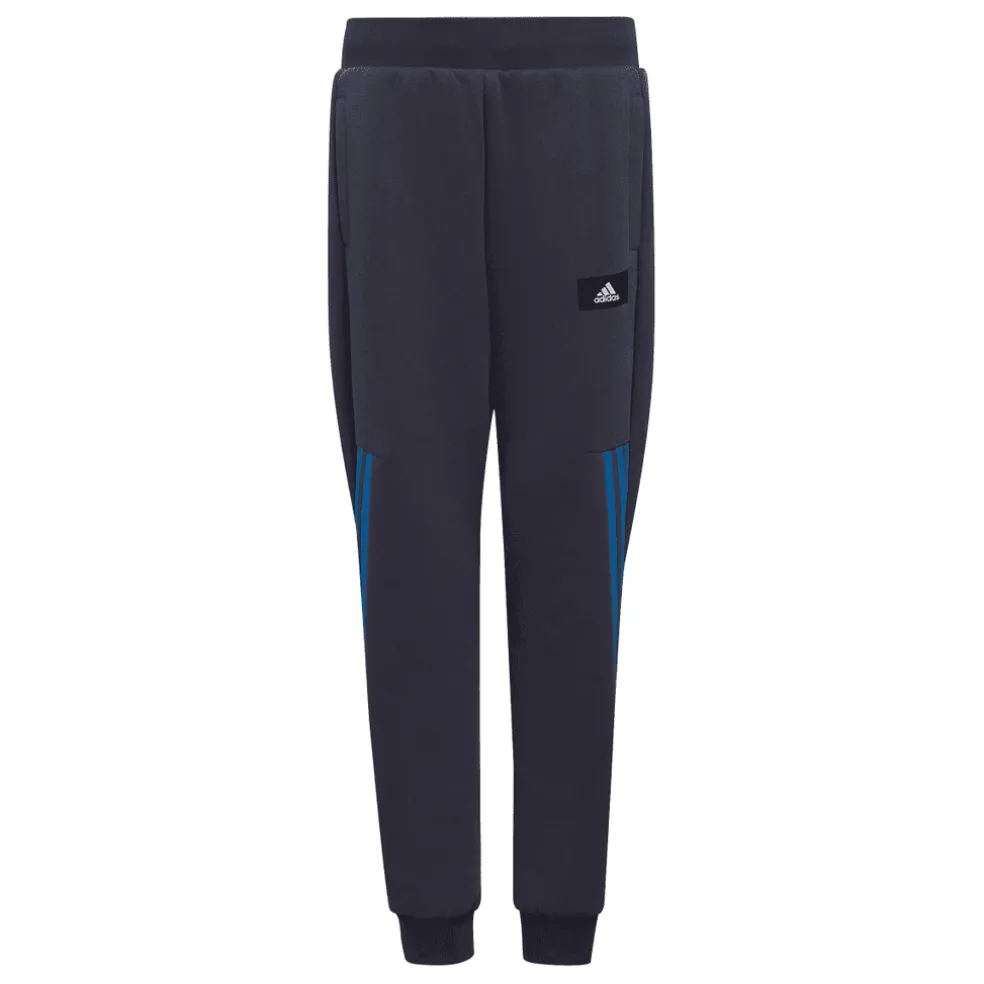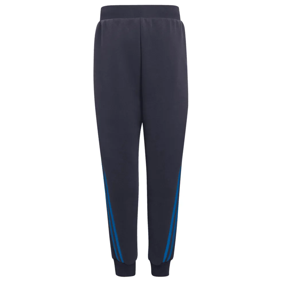 Rock an athletic look on or off the pitch. These juniors’ adidas pants take heritage football DNA and update it with sophisticated modern style. The drop crotch and tapered legs ensure a distraction-free fit whether you’re running a kickabout in the park or lounging on the couch. Hits of 3-Stripes play up your sporty side. This product is made with Primegreen, a series of high-performance recycled materials.