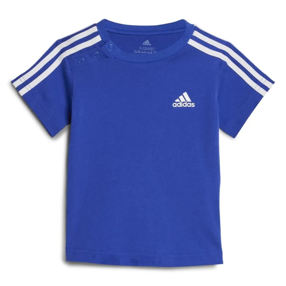 – Featuring short sleeves and a ribbed crew neckline with convenient poppers, this t-shirt makes for effortless dressing, ensuring that mornings are as stress-free as possible. Complete with iconic adidas branding proudly adorned on both the top and shorts, your child’s future athletic spirit is showcased. Whether it’s a playdate or a family outing, the adidas Essentials Sport Set is the perfect choice to accompany your little ones’ everyday adventures. 100% cotton. Machine wash cold according to care label instructions.