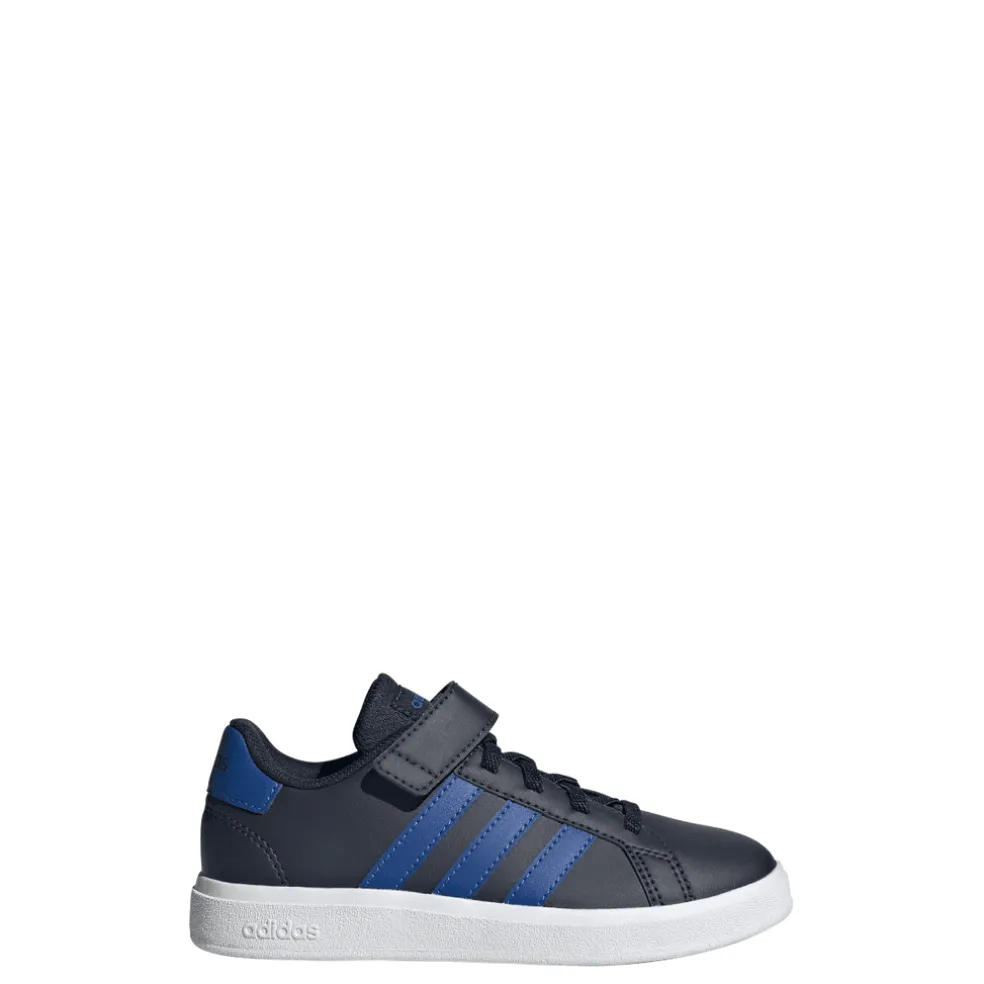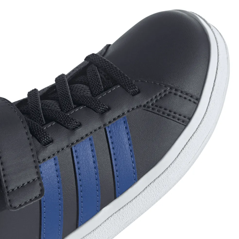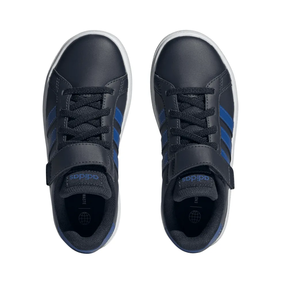 It’s never too early to build your kid’s sneaker collection. Start strong with these kids’ Grand Court adidas shoes. They have a sturdy yet flexible rubber cupsole that supports every step and leap. Made with elastic laces that stretch when kids pull them on and a hook-and-loop top strap they can press down themselves, these classic sneakers won’t stay in the box for long. Made with a series of recycled materials, this upper features at least 50% recycled content.