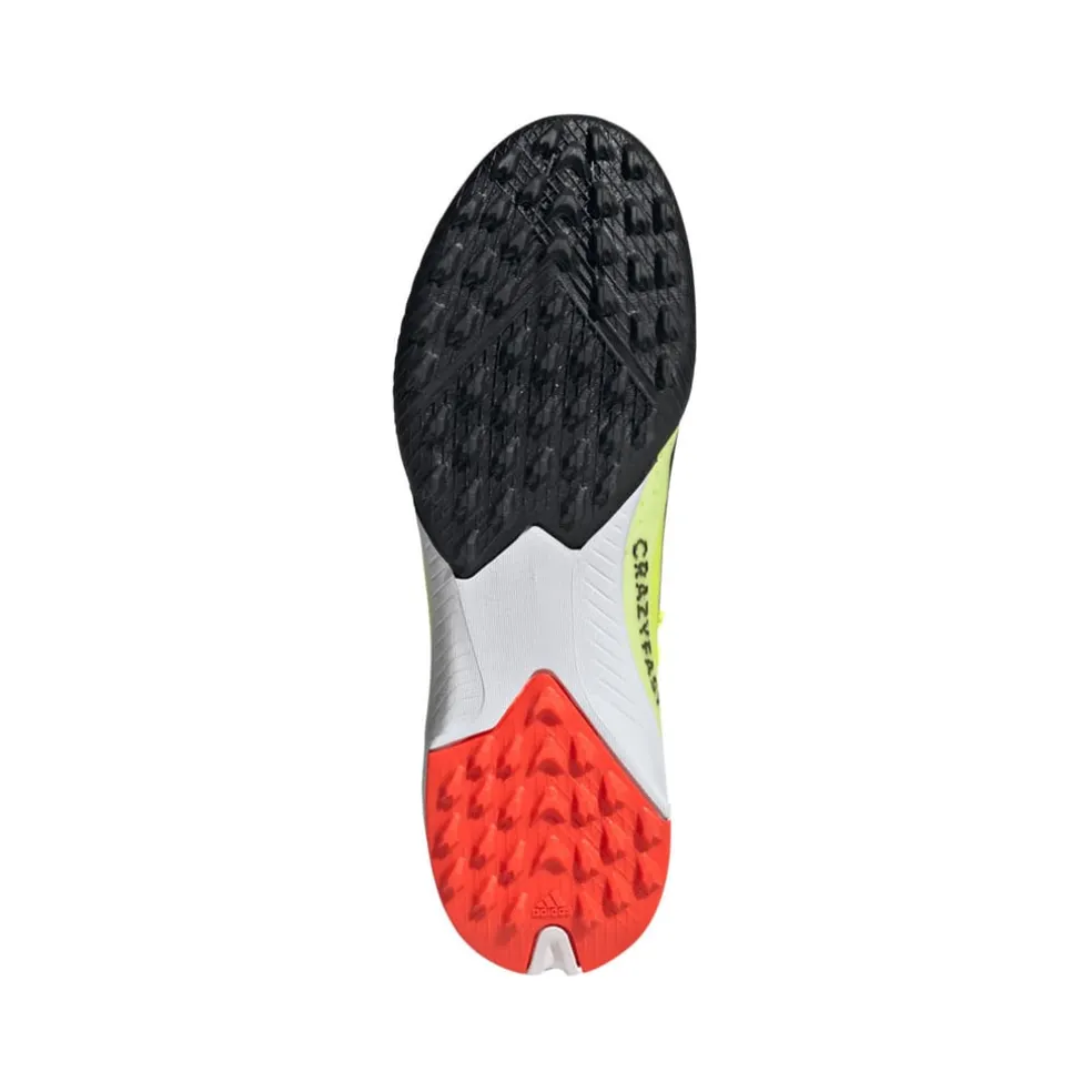 Nothing beats the rush of pure speed. Change the game in an instant and leave defenders trailing with lightweight adidas X Crazyfast. Keeping you stable at full tilt, these football boots for juniors sit on a specialist artificial turf outsole. Featuring extra layers only where reinforcement is required, their coated textile upper comes with a flat-knit collar for solid lockdown.