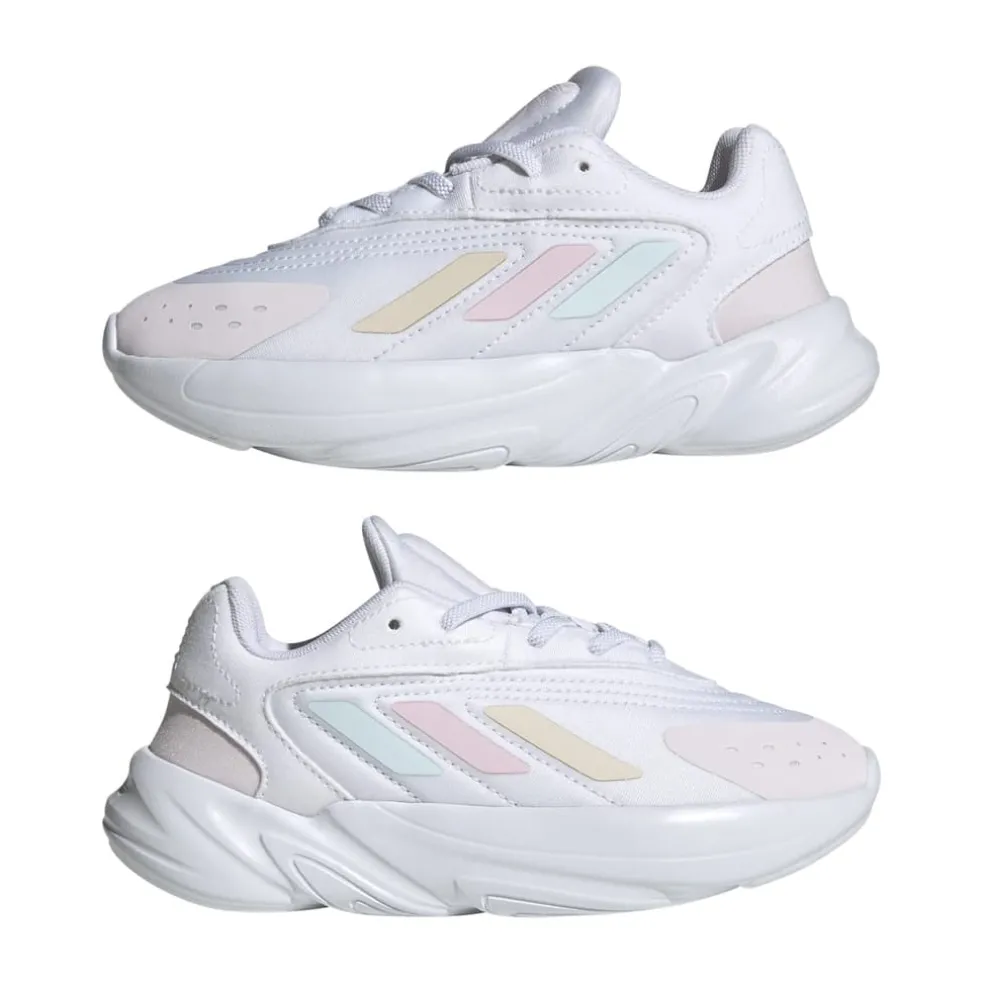 “The past empowers what is to come. Whether that involves big plans for the future or simply the next adventure, these kids’ adidas OZELIA shoes are there every step of the way. The textile upper hugs their feet with a snug, sock-like fit to ensure all-day comfort.Made in part with recycled content generated from production waste, e.g. cutting scraps, and post-consumer household waste to avoid the larger environmental impact of producing virgin content.”Textile and welded upper.Lace closure.Regular fitOrthoLite® sockliner.Adifit length-measuring insole.EVA midsole and outsole.