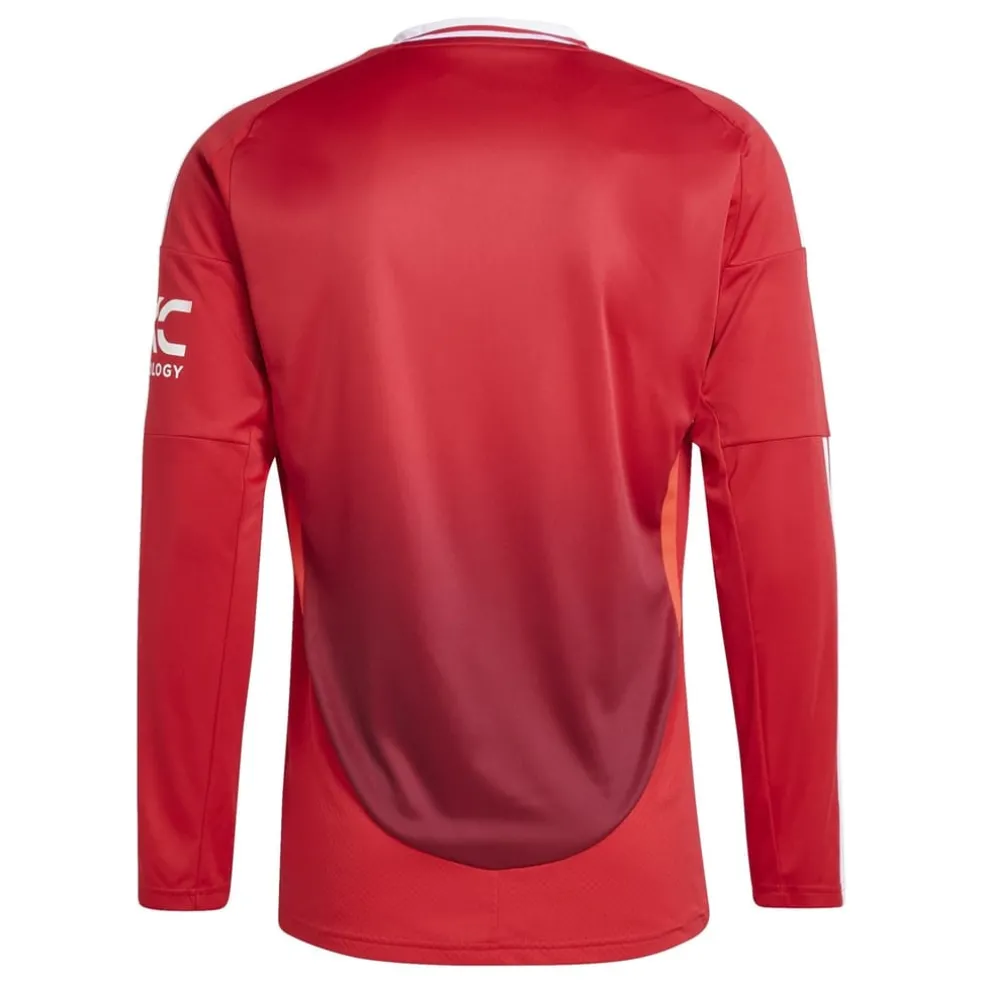 – Emblazoned with the classic club colours and the unmistakable woven team crest, this shirt celebrates the rich history and future triumphs of Manchester United. Whether at Old Trafford or watching from home, this long-sleeved shirt exudes the spirit of Manchester United, making it perfect for match days, stadium visits, or casual wear. Join the global community of Red Devils supporters and experience the essence of victory with every fibre of this remarkable shirt.