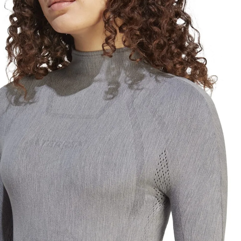 adidas Merino Slim Fit Long Sleeve Turtleneck T-Shirt in Grey
