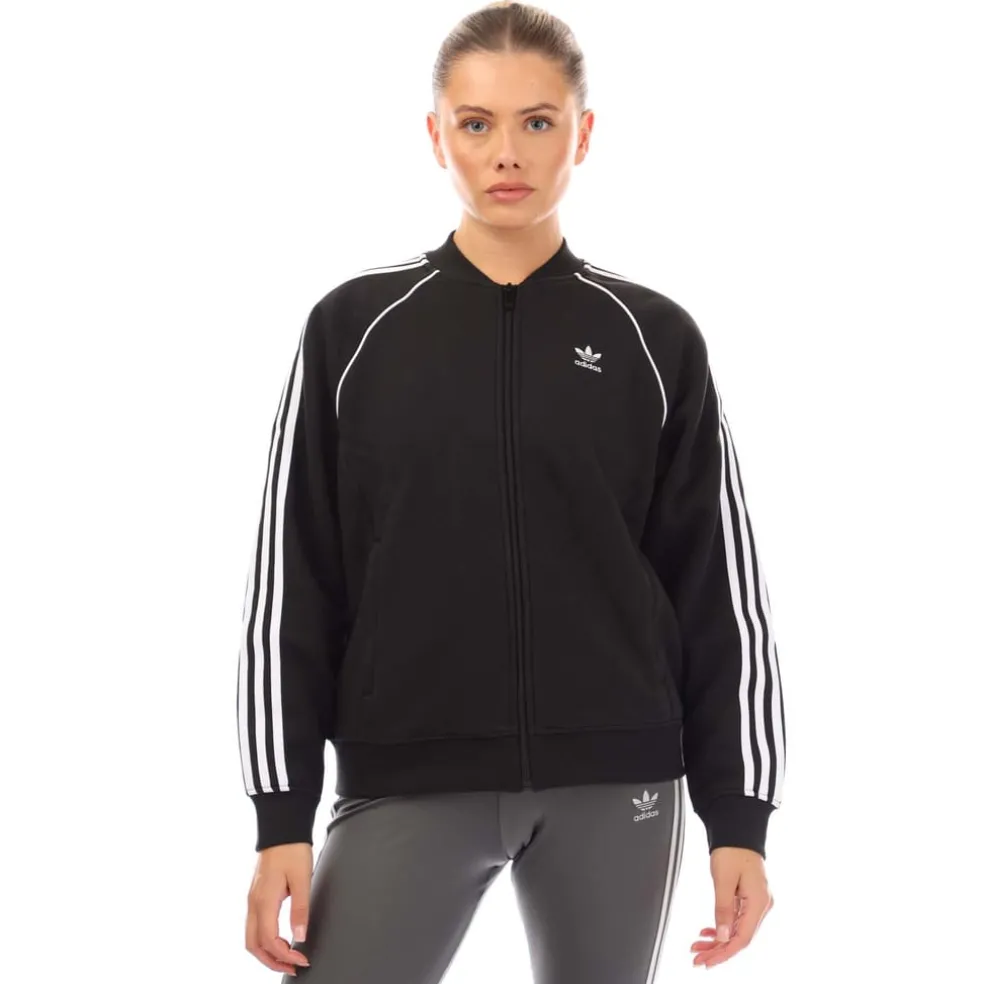 Retro sportswear meets contemporary cool in this adidas jacket. The soft fleece construction and classic bomber cut make it a timeless piece that’s easy to layer with your favourite tees — and oh so cosy. 3-Stripes on the sleeves and a Trefoil logo sign off on the look.