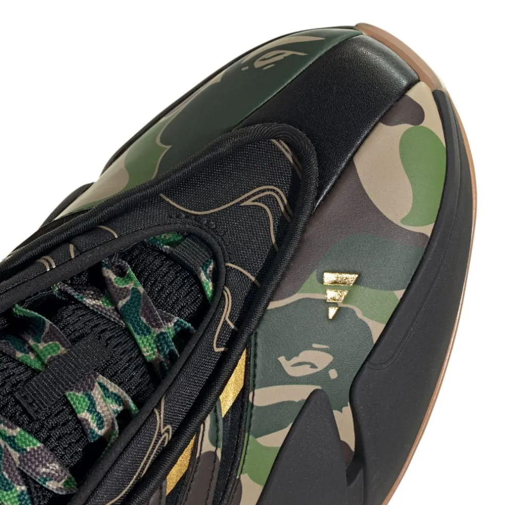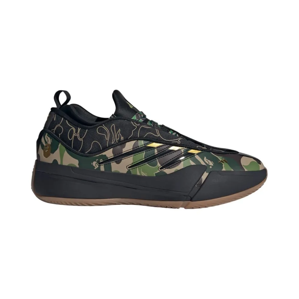The BAPE® x Dame 9 shoes from adidas Basketball step onto the court ready for action. A Lightstrike midsole puts spring in your stride while keeping things light, cushioning impacts and powering your elevation. Signature BAPE® graphics and a Damian Lillard logo get you ready for the victory lap. Lace up and bring the energy, on and off the hardwood.