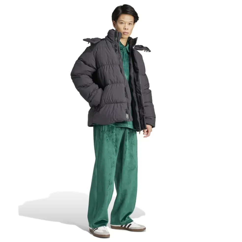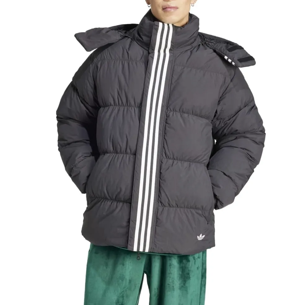 Keeping you warm while also looking cool is the ultimate achievement of this adidas puffer jacket. The smooth nylon shell, zip pockets and storm flap on the hood mean the winter elements are no match for its technical talent. 3-Stripes running down the front make your brand pride abundantly clear.A warm puffer jacket with front-and-centre 3-Stripes.Full zip with drawcord-adjustable hood and storm flap.Regular fit.Inside zip pockets.Polyester lining.53% nylon, 47% recycled nylon plain weave.