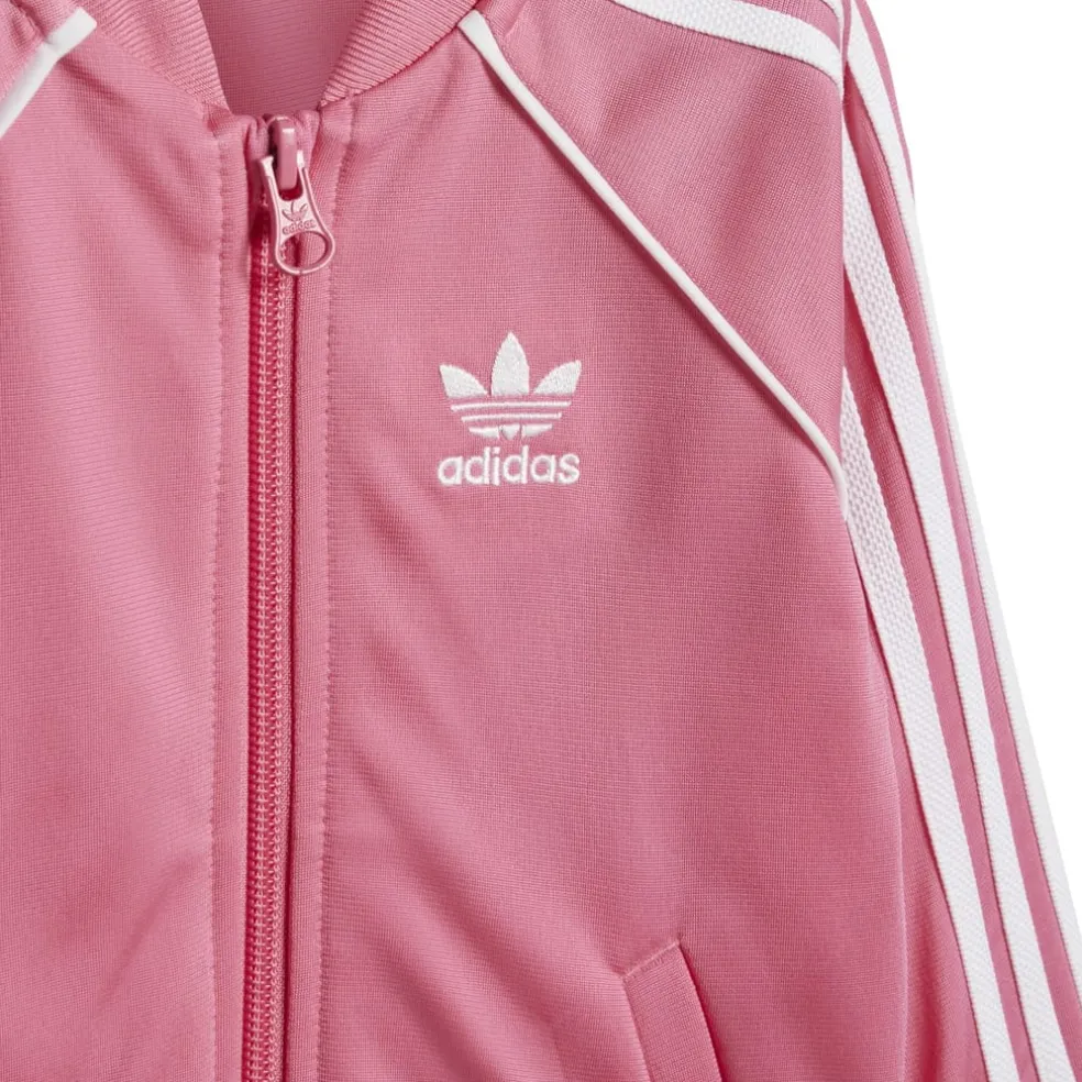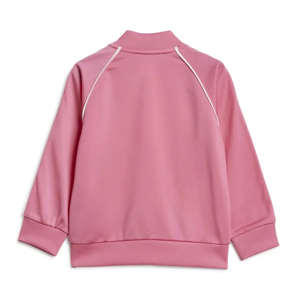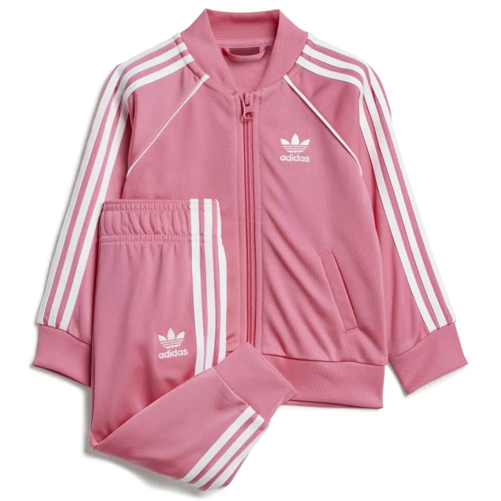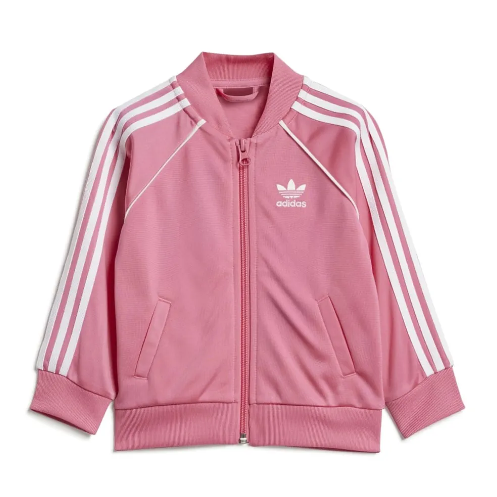 Calling all future MVPs. Your star will win at sporty style in this infants’ track suit. Level up their adidas game with iconic 3-Stripes and a hit of piping. That OG sheen of tricot adds the finishing touch. This track suit is made with Primeblue, a high-performance recycled material made in part with Parley Ocean Plastic.