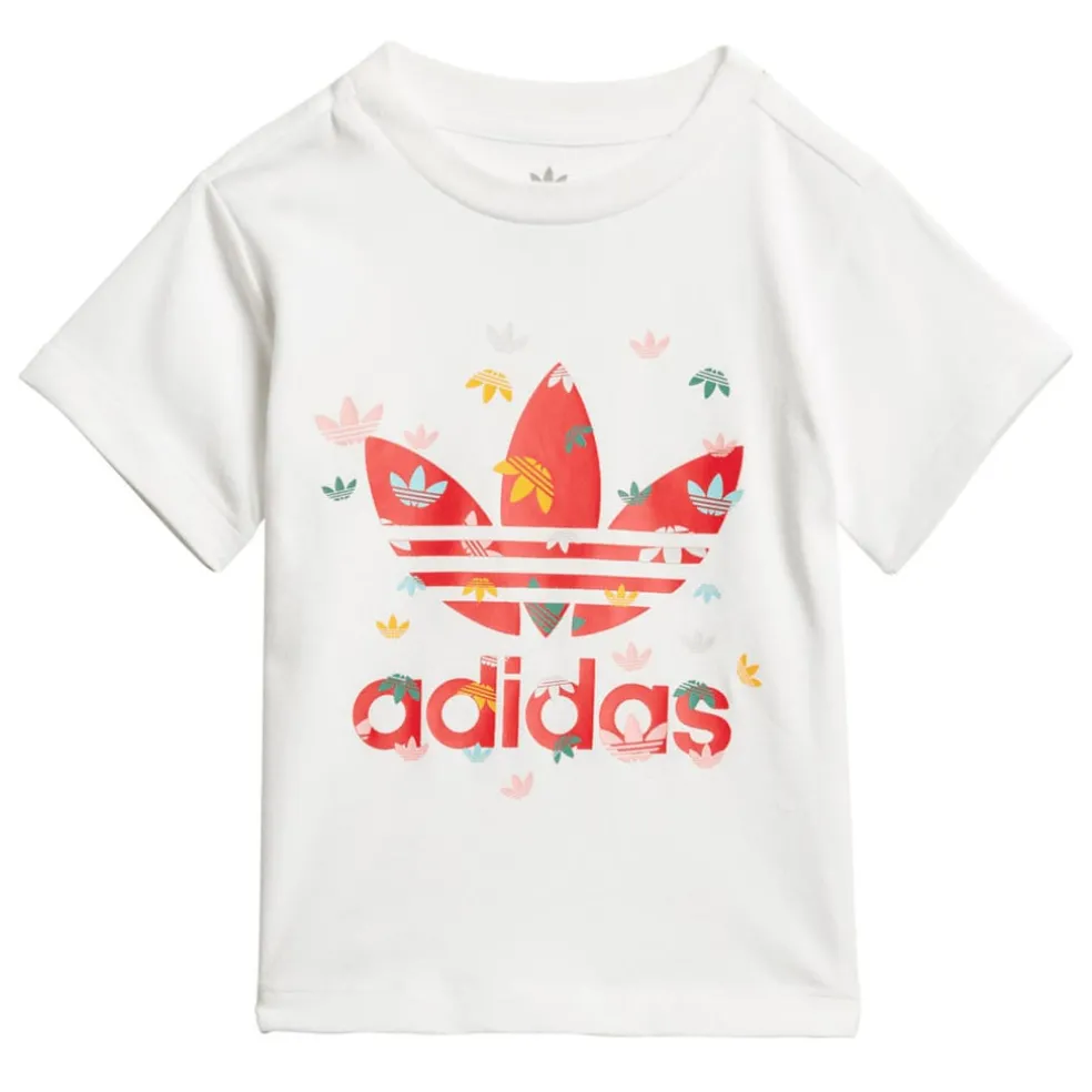 Time for fun. A sporty infants’ tee inspired by adidas Originals heritage. Dancing Trefoil logos add a playful touch. All-cotton jersey makes for comfortable wear.
