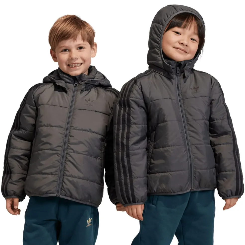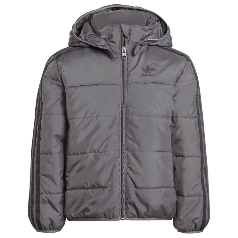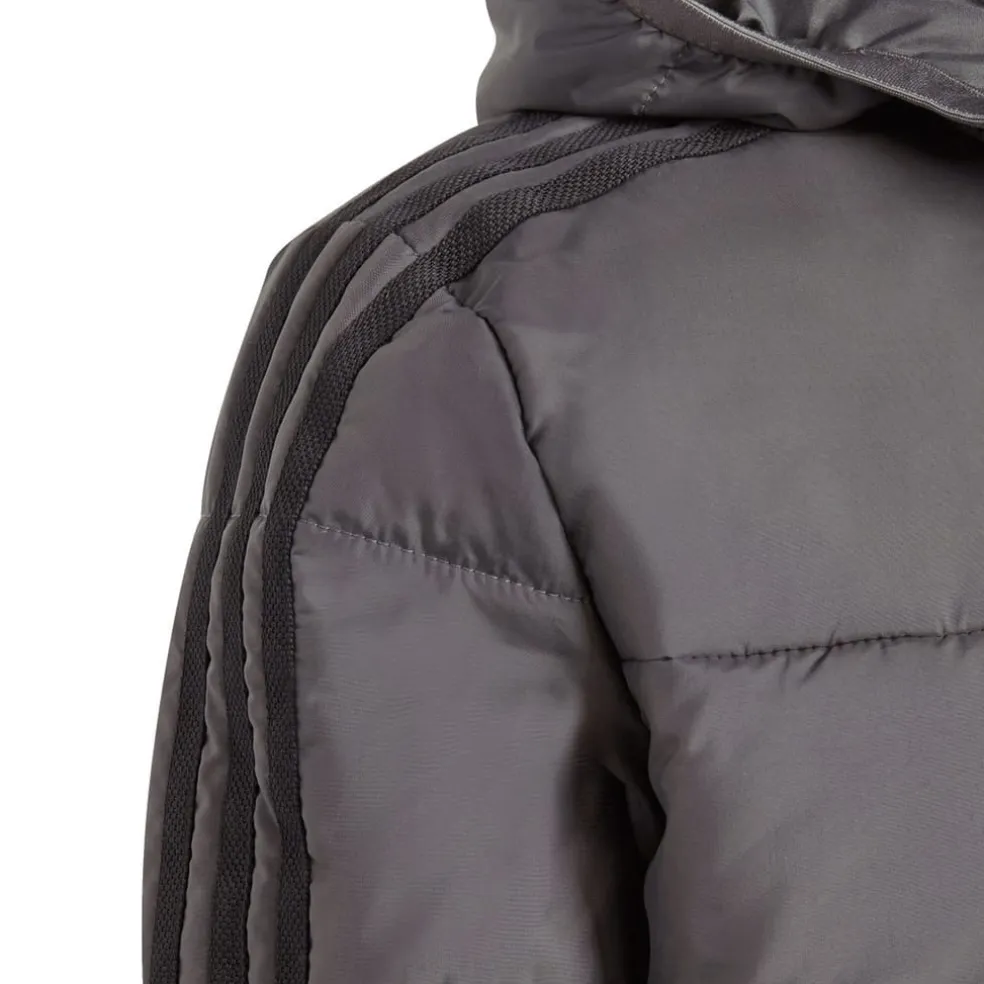 The weather can shift, but your kid’s energy isn’t changing with it. Luckily this adidas jacket offers plenty of warmth, so nothing needs to get in the way of the day’s plans or their moves. It’s insulated, and the detachable hood adjusts to activities and temperatures.Made with a series of recycled materials, and at least 60% recycled content.