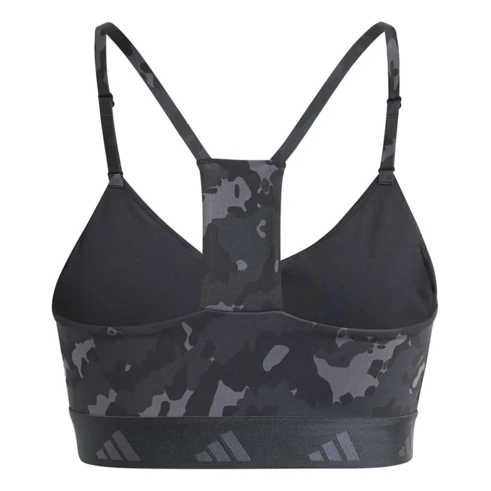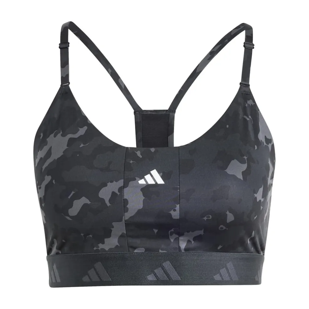 Elevate your training sessions with this adidas sleeveless sports bra. Featuring a camo pattern and a scoop neckline, it offers a slim fit for optimal support. Part of the sporting activity and activewear collections, this bra is designed for performance. The logo embellishment adds a touch of brand recognition, making it a stylish and functional choice for your workouts.