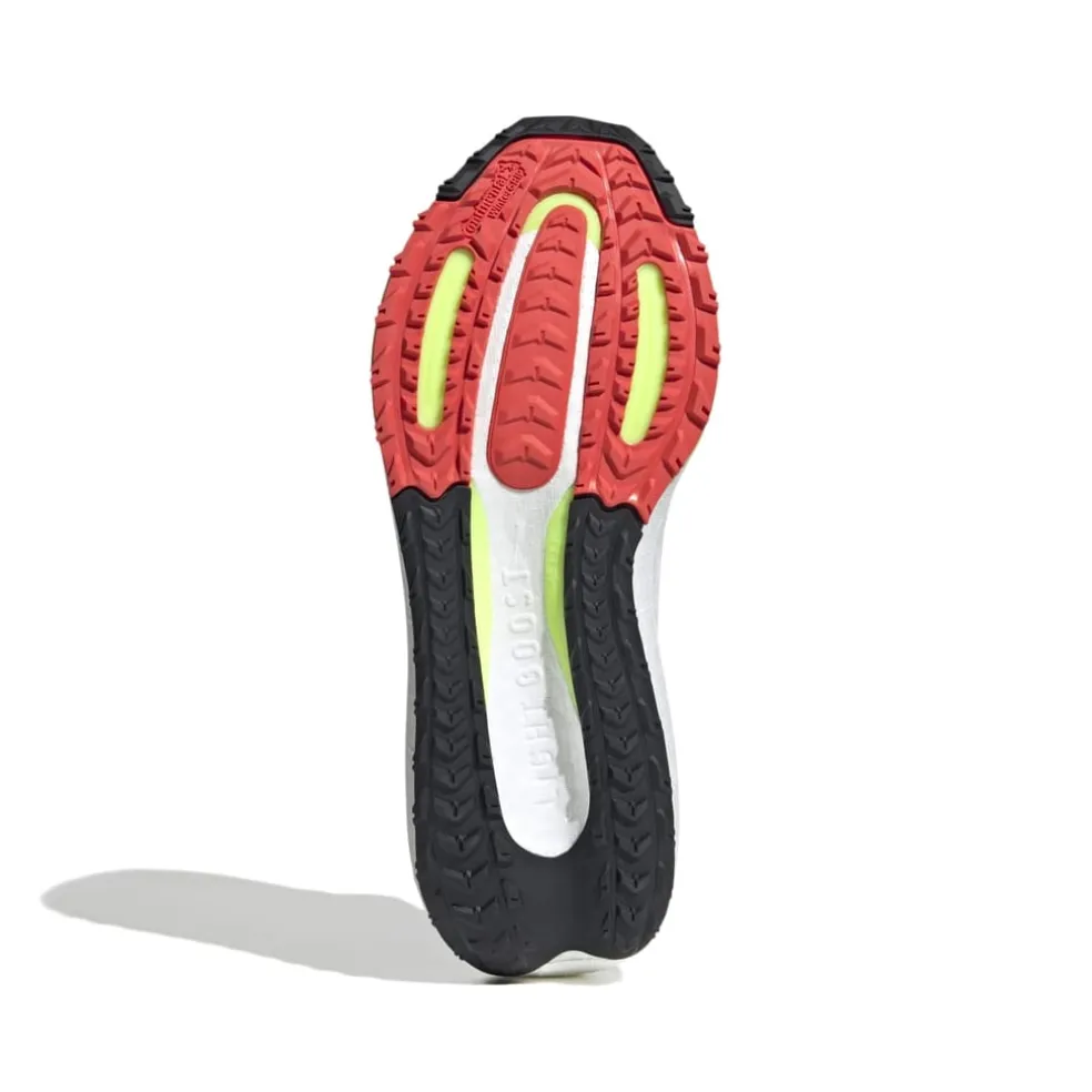 The shoes are equipped with RAIN.RDY technology that uses advanced waterproofing materials and construction to keep the water out. Featuring a GORE-TEX membrane for when you splash through puddles. Underfoot is our lightest BOOST midsole yet — Light BOOST — for epic energy in every stride. Feel the exhilaration of running in the rain.
