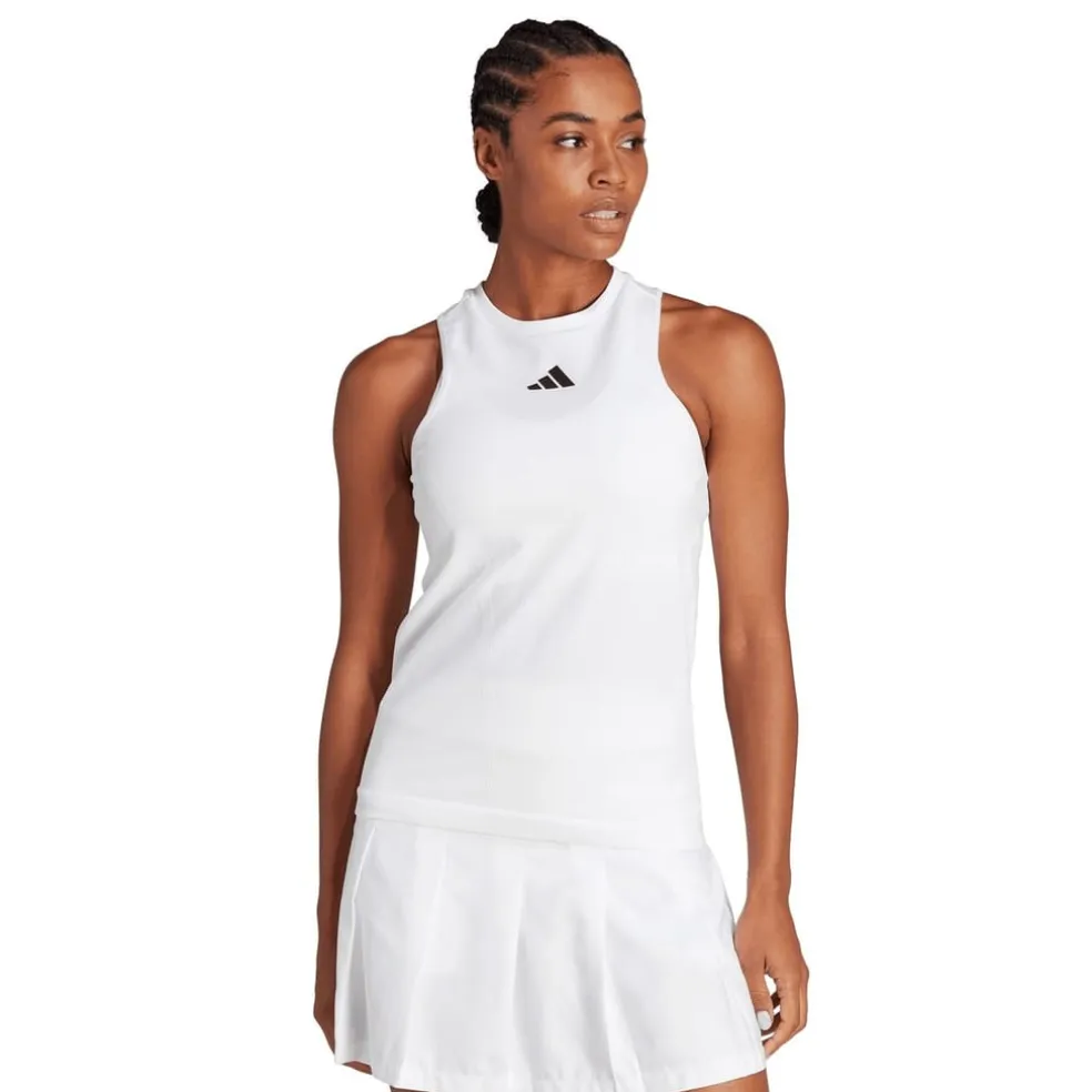 Step onto the court with confidence and grace in the adidas AEROREADY Pro Tennis Dress for Women. The AEROREADY Pro Tennis Dress combines fashion-forward design with high-performance features, making it the ultimate choice for active women who want to dominate their game. Expertly crafted in a soft and comfortable blend of recycled polyester and elastane interlock. Designed with a slim fit and a round neck, this dress flatters the figure while allowing for a full range of motion. The AEROREADY technology wicks away sweat, keeping you cool and dry throughout your sessions. The transparent-mesh back panel adds a touch of feminine flair and enhances breathability. Finished in a solid white colouring and completed with the iconic adidas logo on the chest signs off the look with a premium finish.