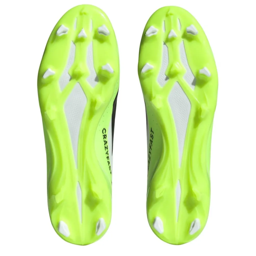 Get ready to conquer the pitch with adidas X Crazyfast League Firm Ground Football Boots. Whether you are hitting an intense training session or playing in a competitive match, these boots are designed to take your performance to new heights. Crafted with a coated textile upper material, it provides durability and offers a soft touch, ensuring exceptional ball control when dribbling at high speeds. Made with at least 20% recycled materials, it showcases adidas’ commitment to sustainability. Designed with a lightweight, high-speed outsole featuring additional forefoot studs, these boots optimize traction for rapid acceleration. The laceless, flat knit, low-cut collar ensures a supportive fit and firm lockdown, while the soft foam midsole provides superior cushioning and comfort throughout the game. To complete the design, the iconic 3 stripes and the Crazyfast logo feature on the side of the boots for brand recognition. Composition: Upper/ Lining: Textile. Sole: Synthetic. Follow care i