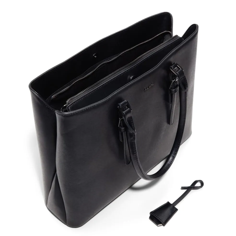 Discover the Aldo tote bag, a stylish accessory featuring a secure buckle and zipper closure. This elegant piece is designed with a double handle for comfortable carrying. The tote is adorned with a subtle logo embellishment, adding a touch of sophistication to your ensemble.