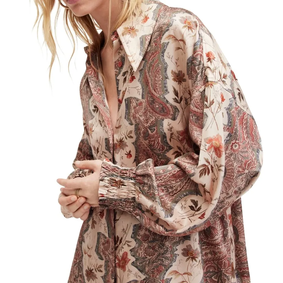 AllSaints Charli Relaxed Fit Long Sleeve Shirt in Pink