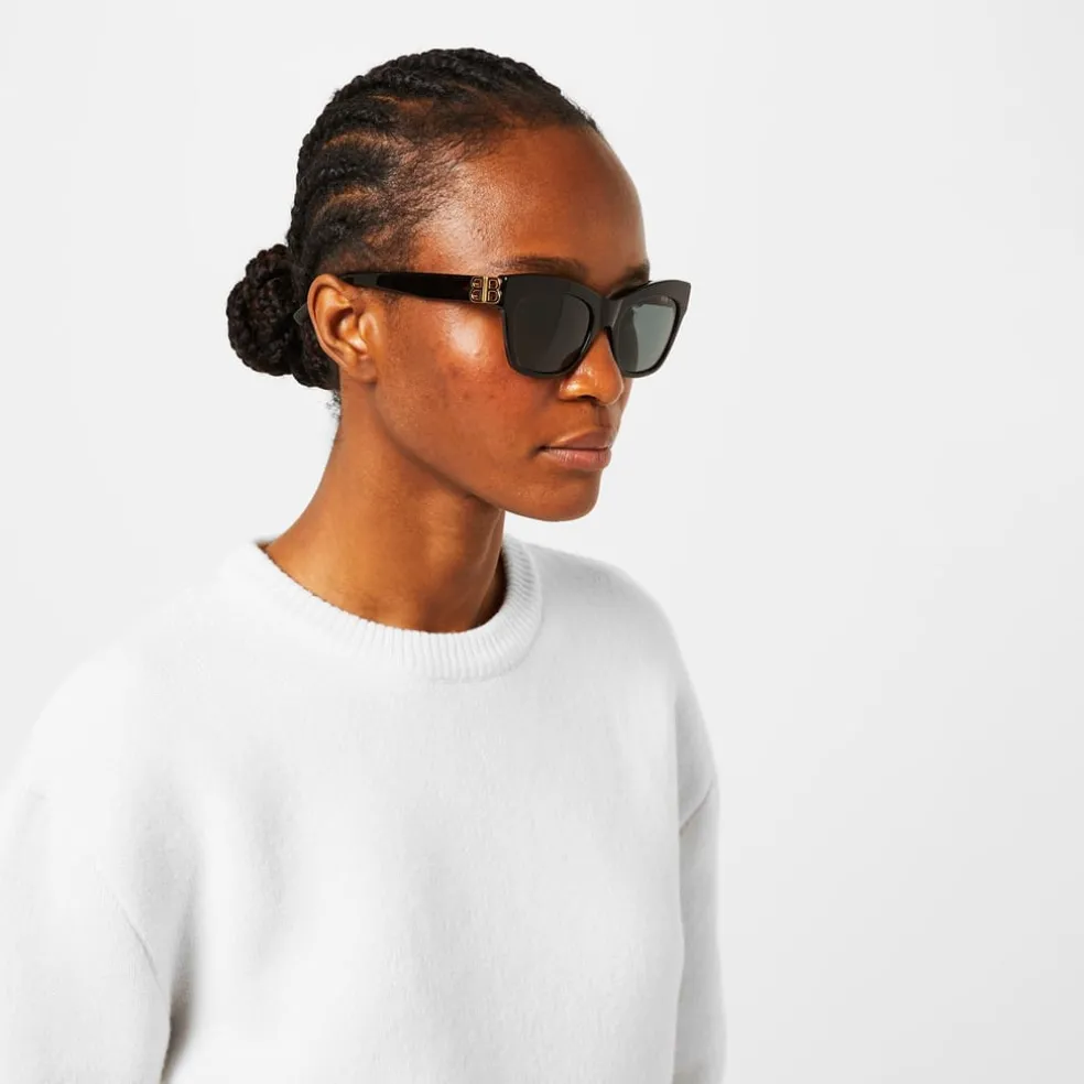 – The acetate material exudes a sense of refinement and durability, while the cat eye frame shape adds a touch of allure and femininity. With a full-rim design and regular fit, these sunglasses provide a secure and comfortable experience, allowing you to showcase your impeccable style with confidence. The Italian-made construction showcases the brand’s commitment to luxury, with contrasting gold hardware Balenciaga branding to the temples, elevating these sunglasses to new heights of sophistication. The curved arms ensure a snug fit, while the UV protection offers essential safeguarding against the sun’s harmful rays. Designed for everyday wear, these sunglasses are perfect for enjoying strolls in the summer months or indulging in luxurious vacations. Whether you’