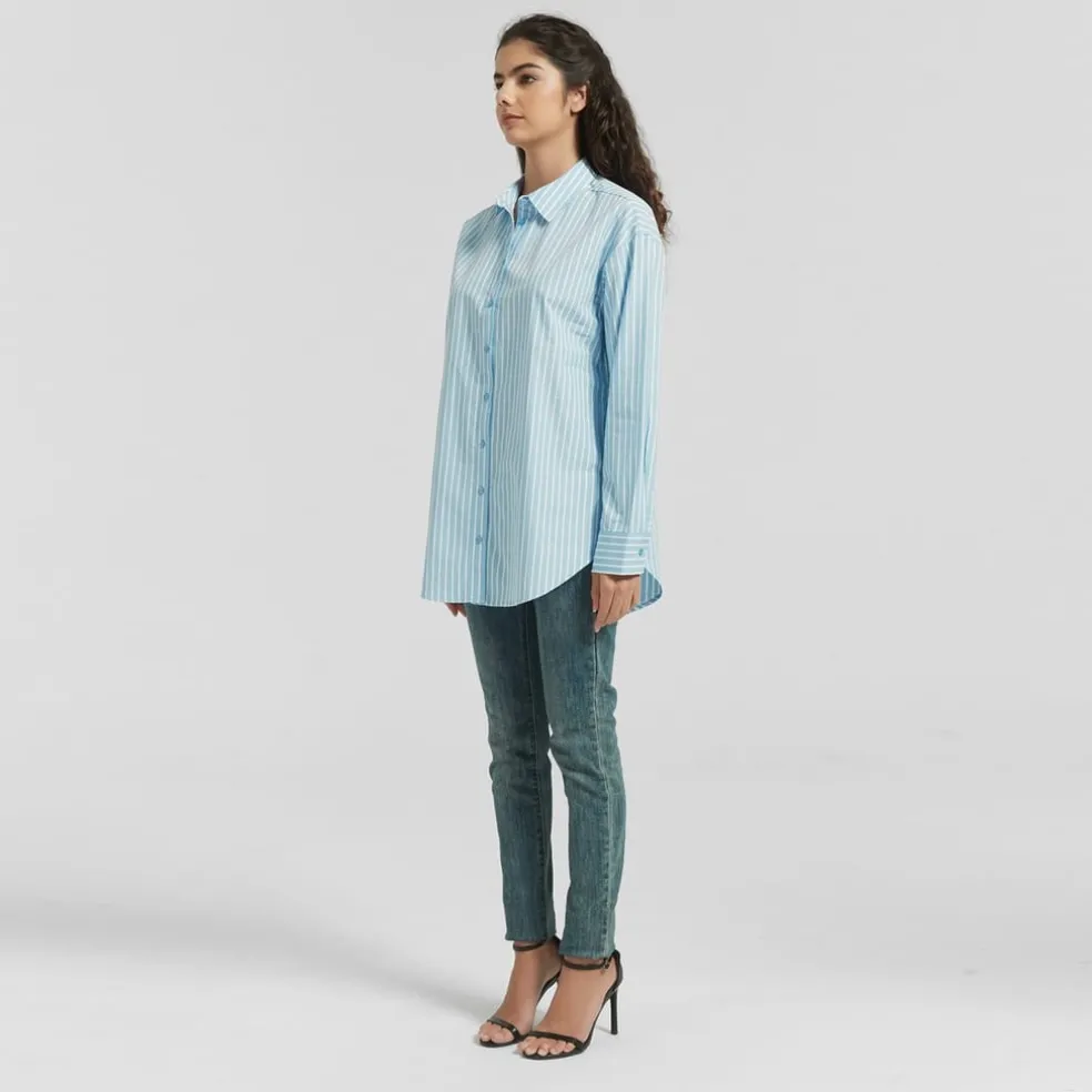 Be You Stripe Long Sleeve Relaxed Fit Shirt in Blue