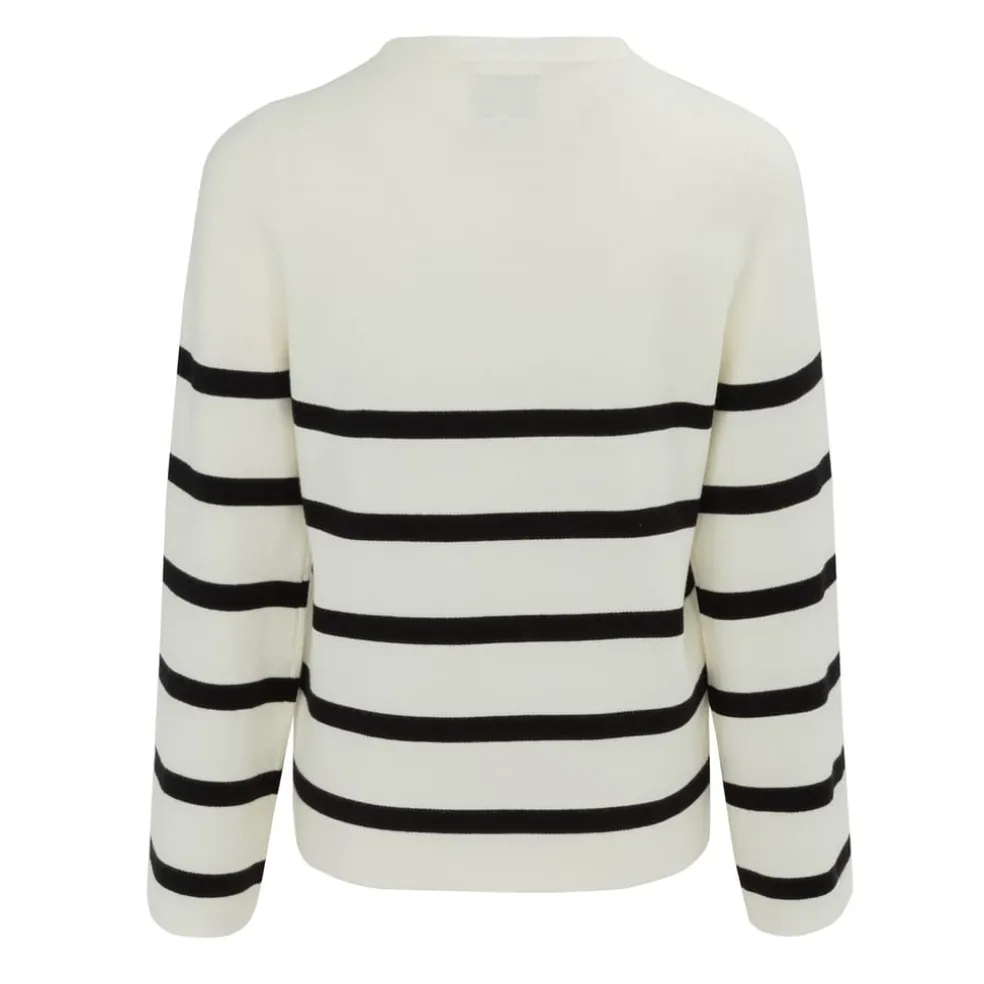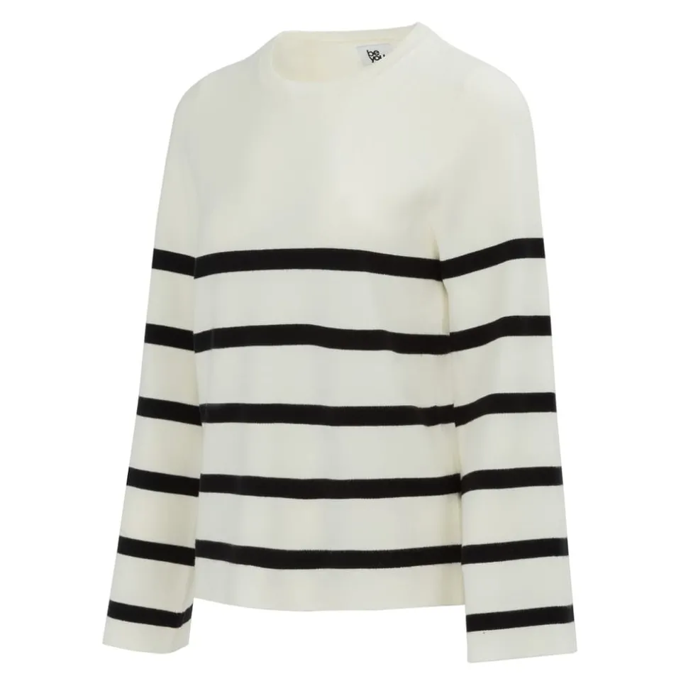 – Features: Ribbed crew neck, flared long sleeve, stripe pattern.