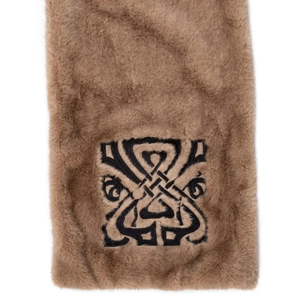 Biba Logo Faux Fur Scarf in Brown