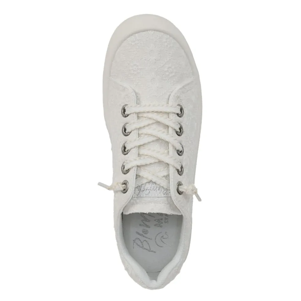 – Fabric upper with allover tonal embroidery.