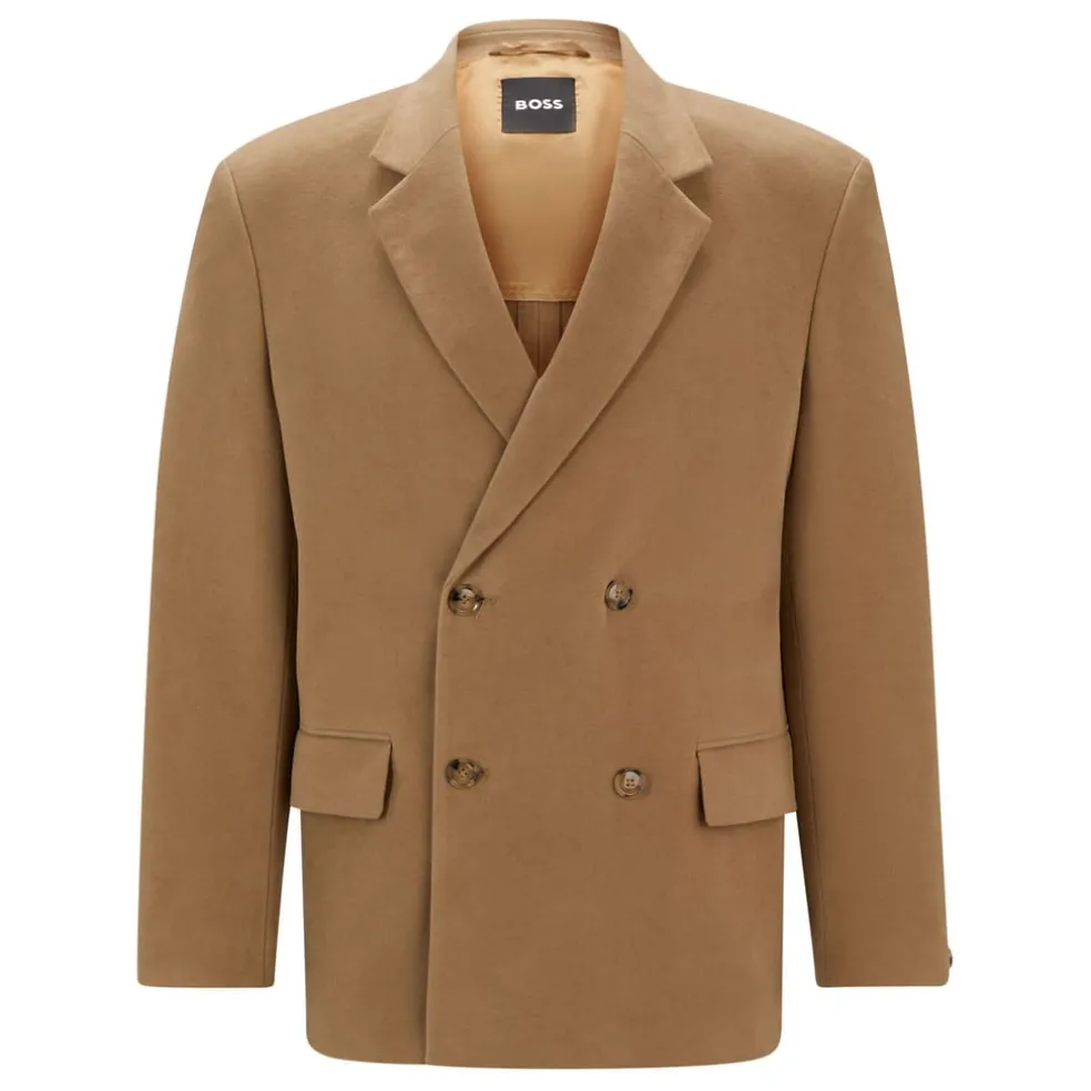 A double-breasted jacket in a relaxed fit by BOSS Menswear. This fully lined piece is crafted in peached cotton with a twill weave.
