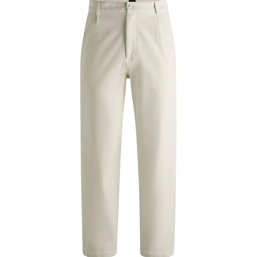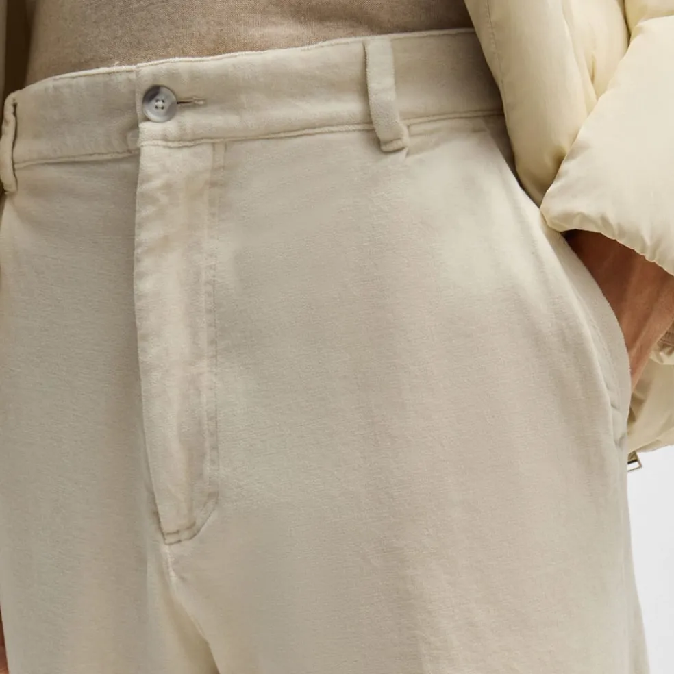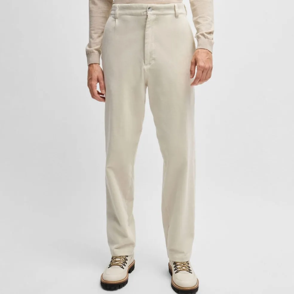 Easy-wear trousers in a relaxed fit with front pleats by BOSS. This pair is crafted in stretch cotton with a velvet touch.