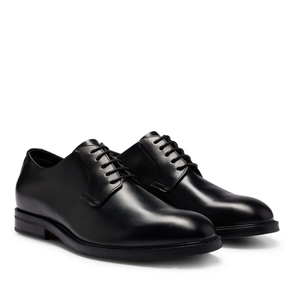 An innovative formal design that boasts lasting comfort without compromising on sophistication, these BOSS leather Derby shoes feature a concealed, sneaker-inspired sole for ease of wear and enhanced weight distribution. Italian-made design with a high-tech memory-foam lining for extra comfort. With added cushioning and arch support for effortless all-day wear and reduced foot fatigue.