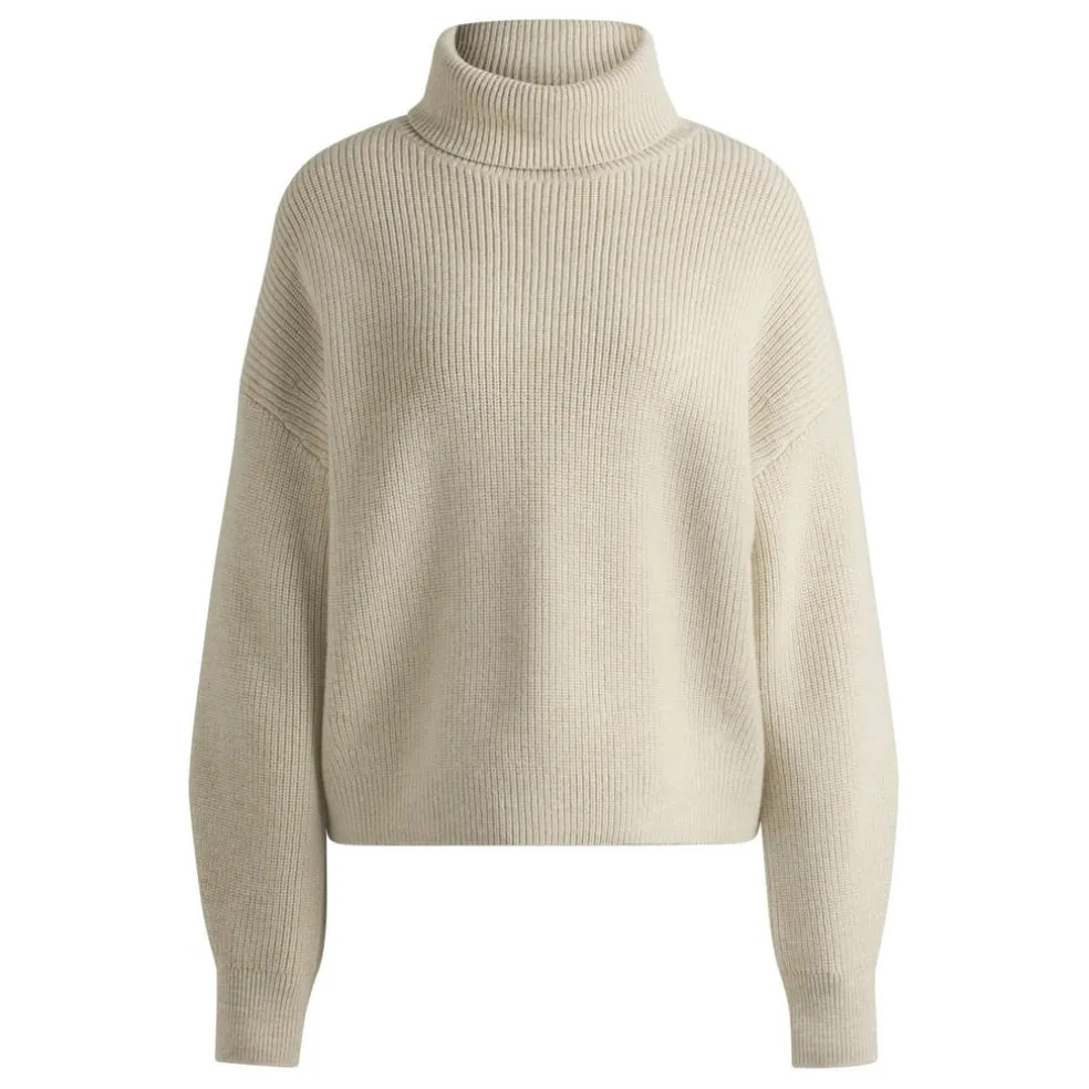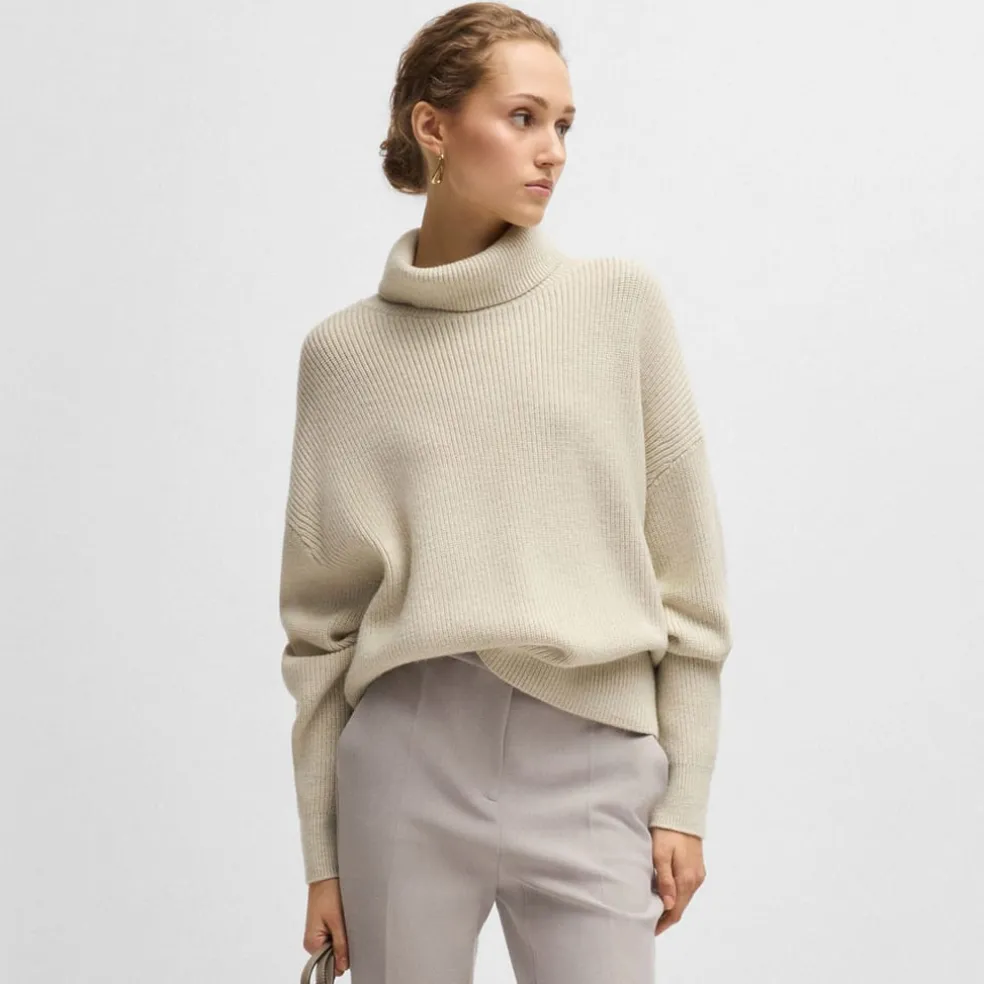A cosy rollneck sweater by BOSS. Crafted in thermoregulating wool, this relaxed-fit piece has puff sleeves and a ribbed structure for chic style. This product contains at least 60% better raw materials. This product is made with responsibly sourced wool.