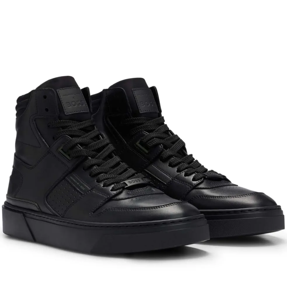 – Mix leather nylon high cut sneaker.