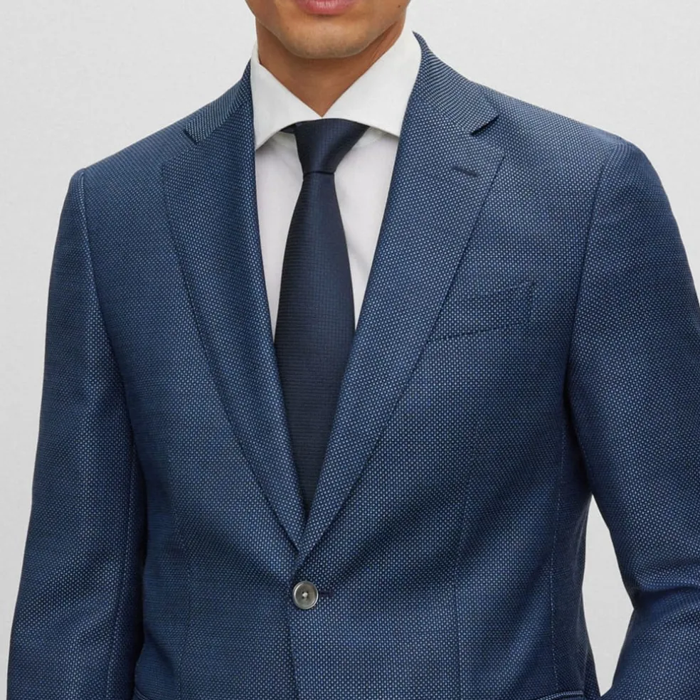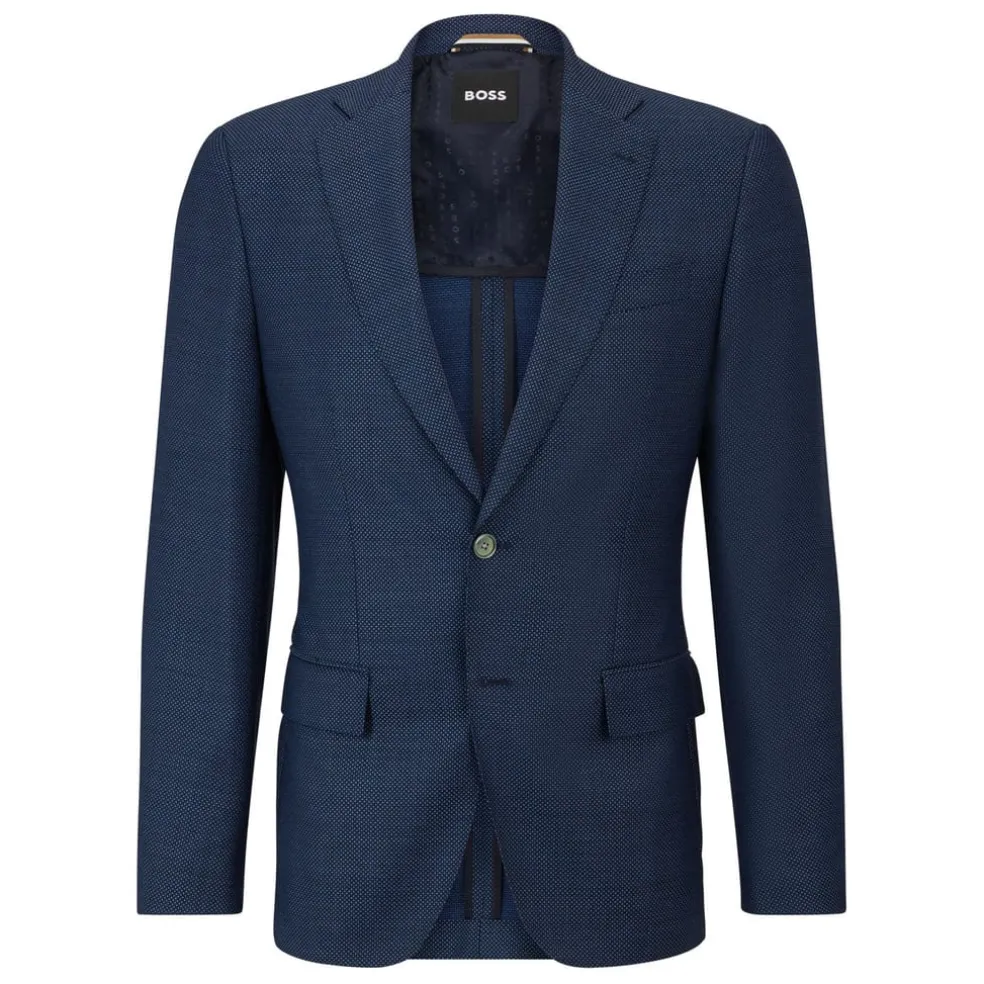 A single-breasted jacket by BOSS Menswear, cut to a slim fit in wool woven with a twill structure.