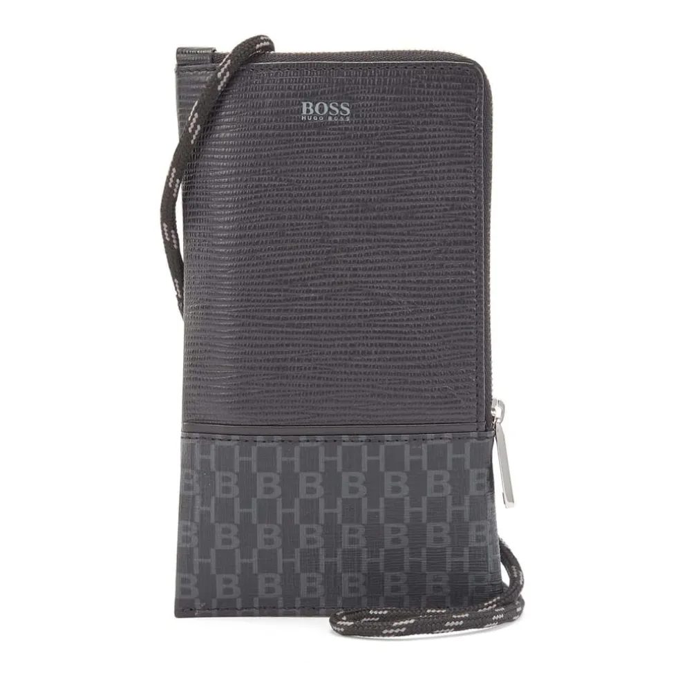 – Italian coated fabric with printed iconic all over logo and leather trims.