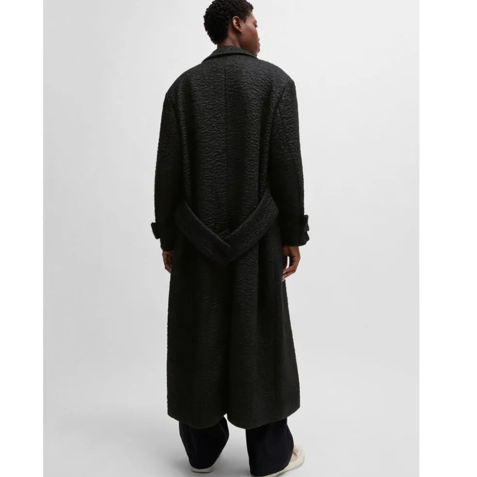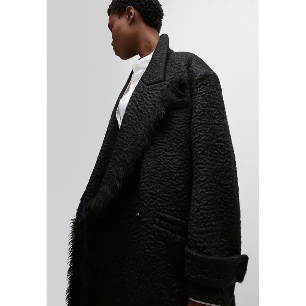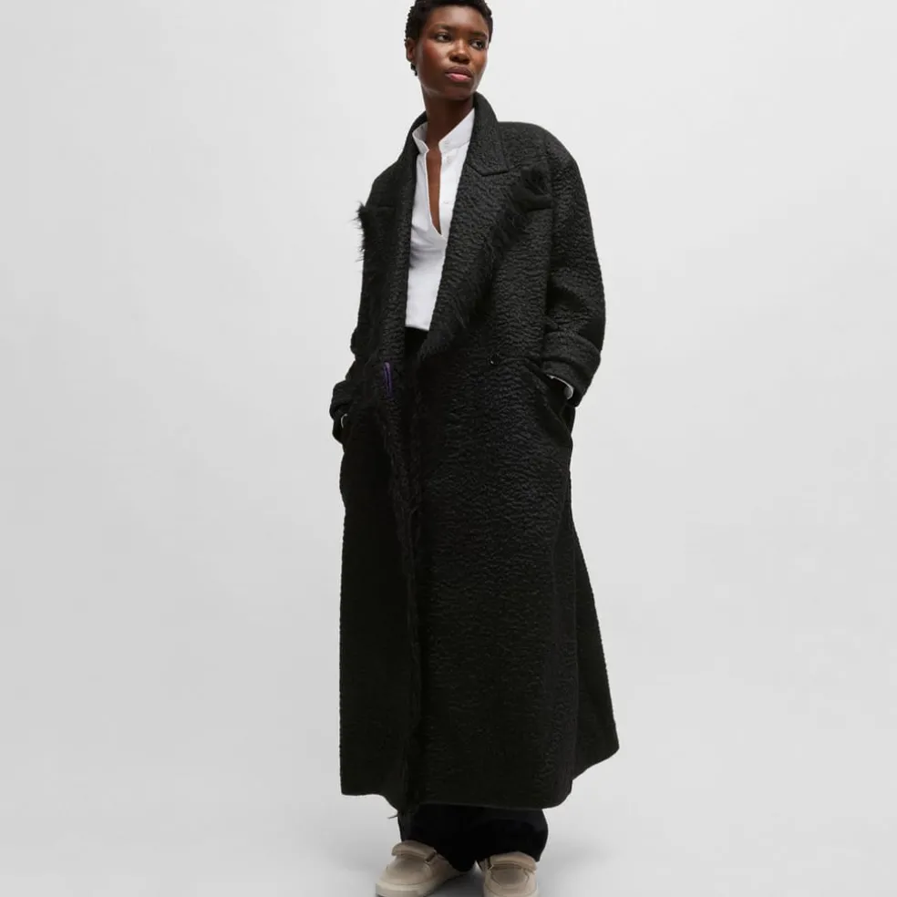 A boyfriend-style coat in textured, coated fabric blended with alpaca and wool by NAOMI x BOSS. This oversize piece has RFID-protective pocket lining and a faux-fur edged front. Note: each piece is cut specifically with the grain of the fabric, so is totally unique and the faux fur detail may vary slightly between garments. Part of an exclusive capsule, co-created with Naomi Campbell, designed with elegance, confidence, and on-the-go ease in mind.