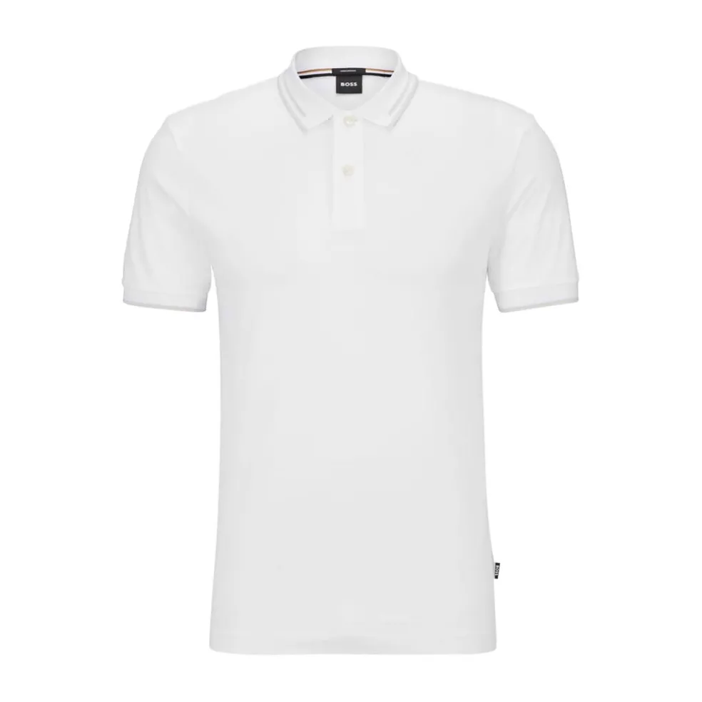 A short-sleeved polo shirt in interlock cotton by BOSS Menswear. Cut to a defined fit for a neat silhouette, this polo shirt is detailed with jacquard stripes across the sleeves and chest. The collar and cuffs are finished with contrast tipping.