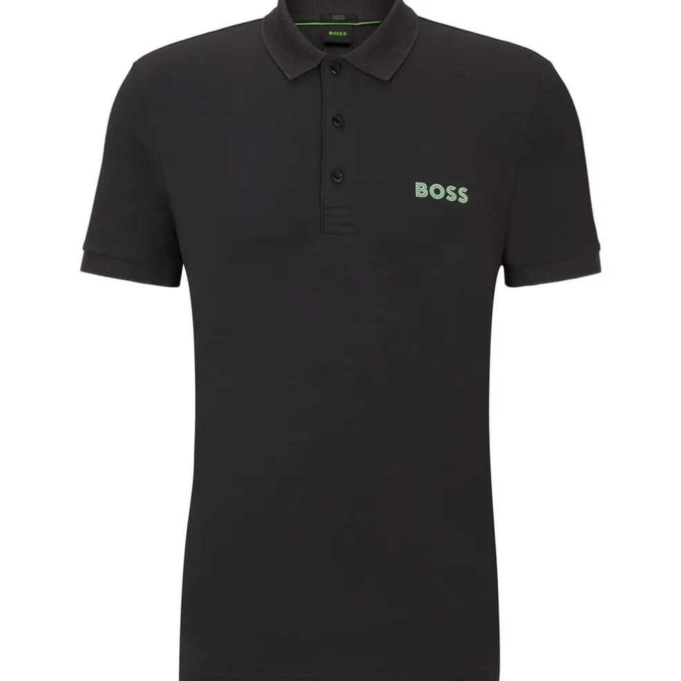 This BOSS polo shirt is a versatile addition to your wardrobe. Crafted in a regular fit, it features short sleeves and a ribbed cuff for a classic look. The solid pattern and logo embellishment add a touch of sophistication. Complete with a polo collar and button closure, this shirt offers both style and comfort.