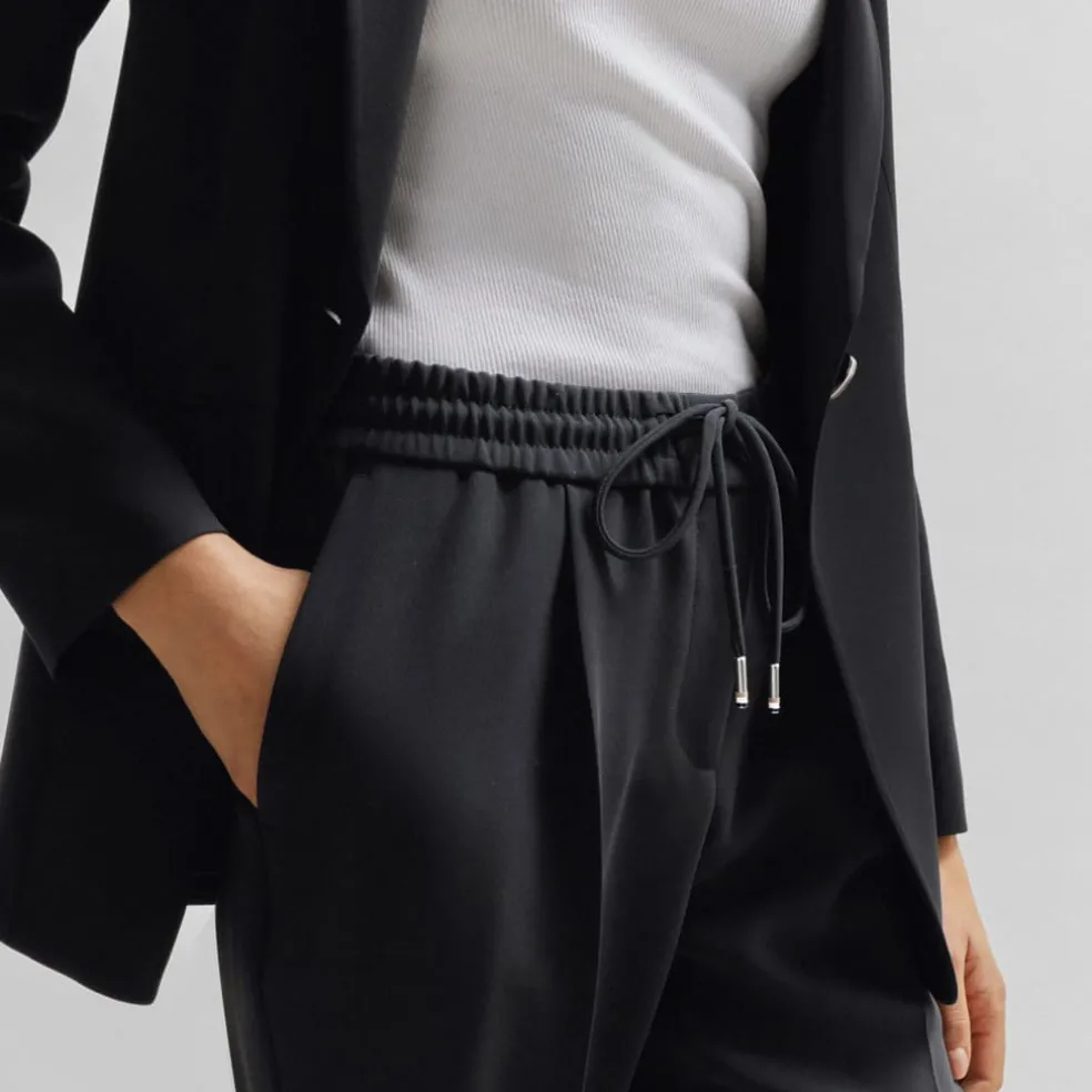 Versatile trousers by BOSS Womenswear, cut to a straight fit with a cropped length in crease-resistant Japanese crepe with natural stretch for easy comfort. This product is made with cellulose fibres, derived from natural raw wood material and sourced from responsibly managed forests.