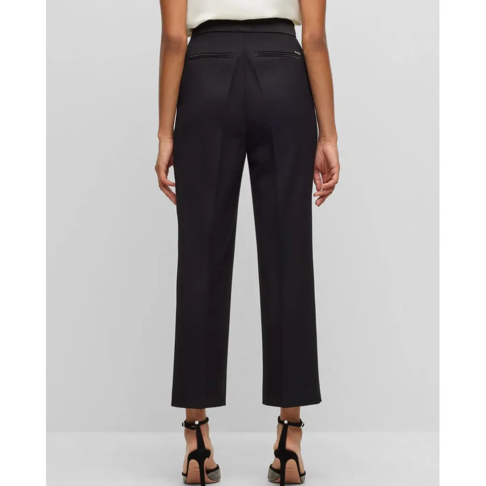Cropped and high-waisted tuxedo pants by BOSS Womenswear, cut to a straight fit in soft twill with silken trims.