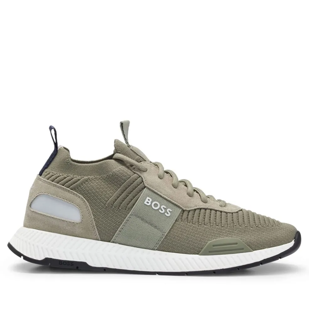 Sporty sock trainers by BOSS with structured-knit uppers and a lightweight EVA sole with a rubber bottom. Featuring subtle branding at the tongue, side panel and backtab, these trainers are detailed with elasticated and webbing accents.
