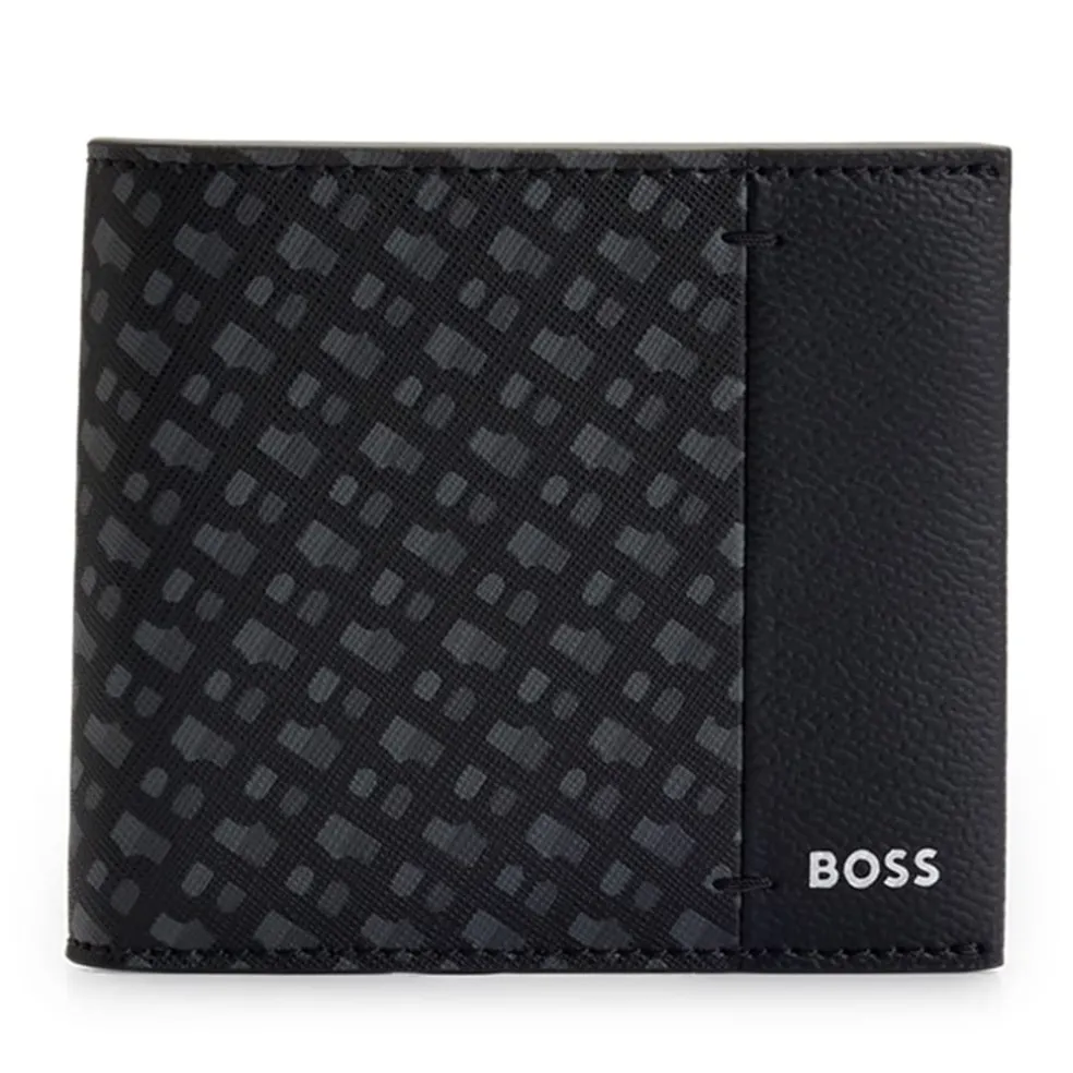 Boss Zair Geometric Billfold Wallet in Black