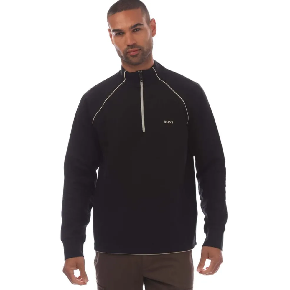 A signature zip-neck sweatshirt with branding, piping and embossed artwork by BOSS Menswear. This regular-fit layer is created in soft stretch cotton.