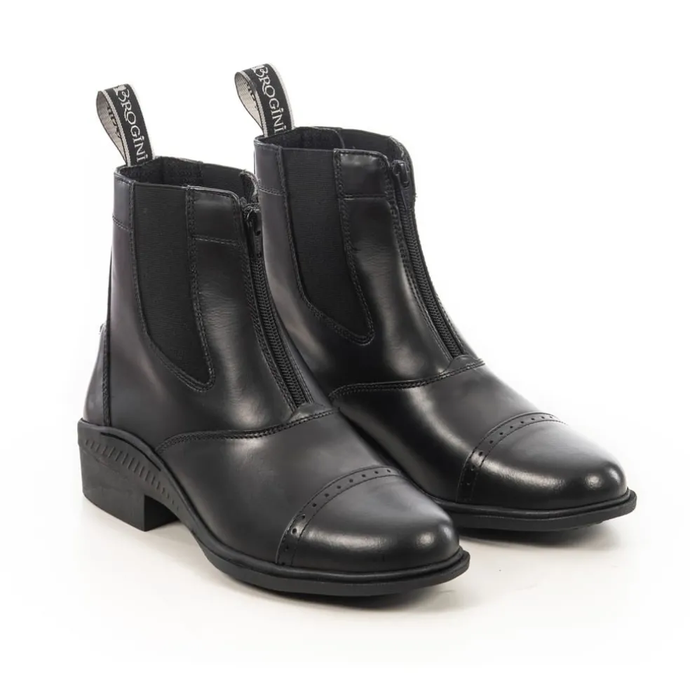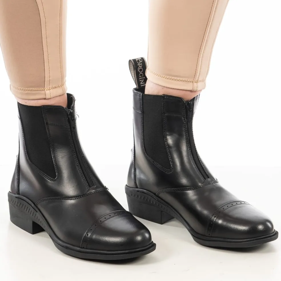The Brogini Tivoli Zip Boots offer a combination of style, comfort and functionality that makes them perfect for wearing on the yard and in the saddle. Crafted with smooth leather uppers, elasticated inserts for an individual fit, front zip fastenings, slight brogue detail to the toes for a stylish look and a pull tab to the heel for easy on and off.