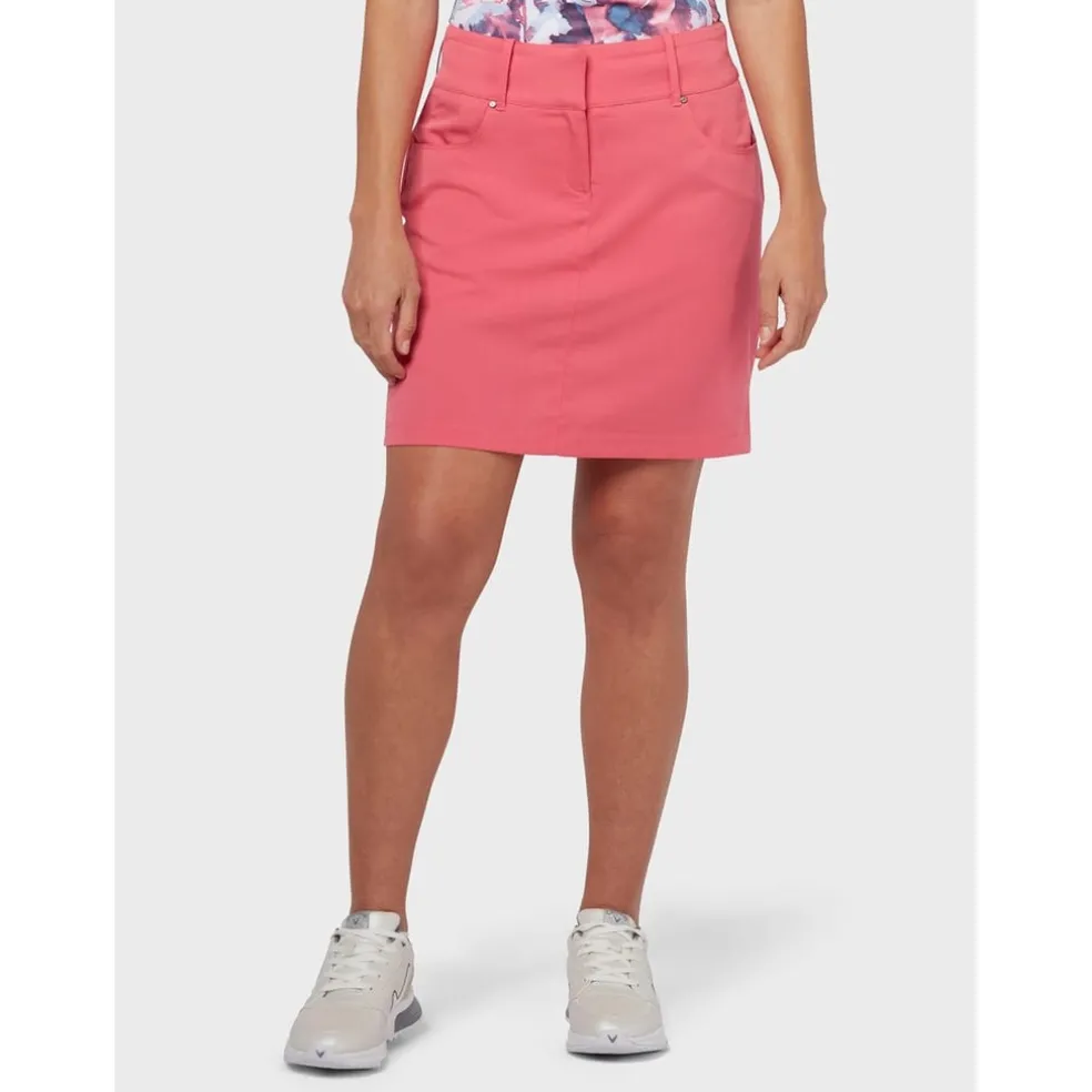 This Callaway Ergonomic Skirt is crafted with a button fastening waist and a zip up fly for a secure fit. It features belt loops and four pockets for a classic look. This skirt is designed with a signature logo and is complete with Callaway branding.