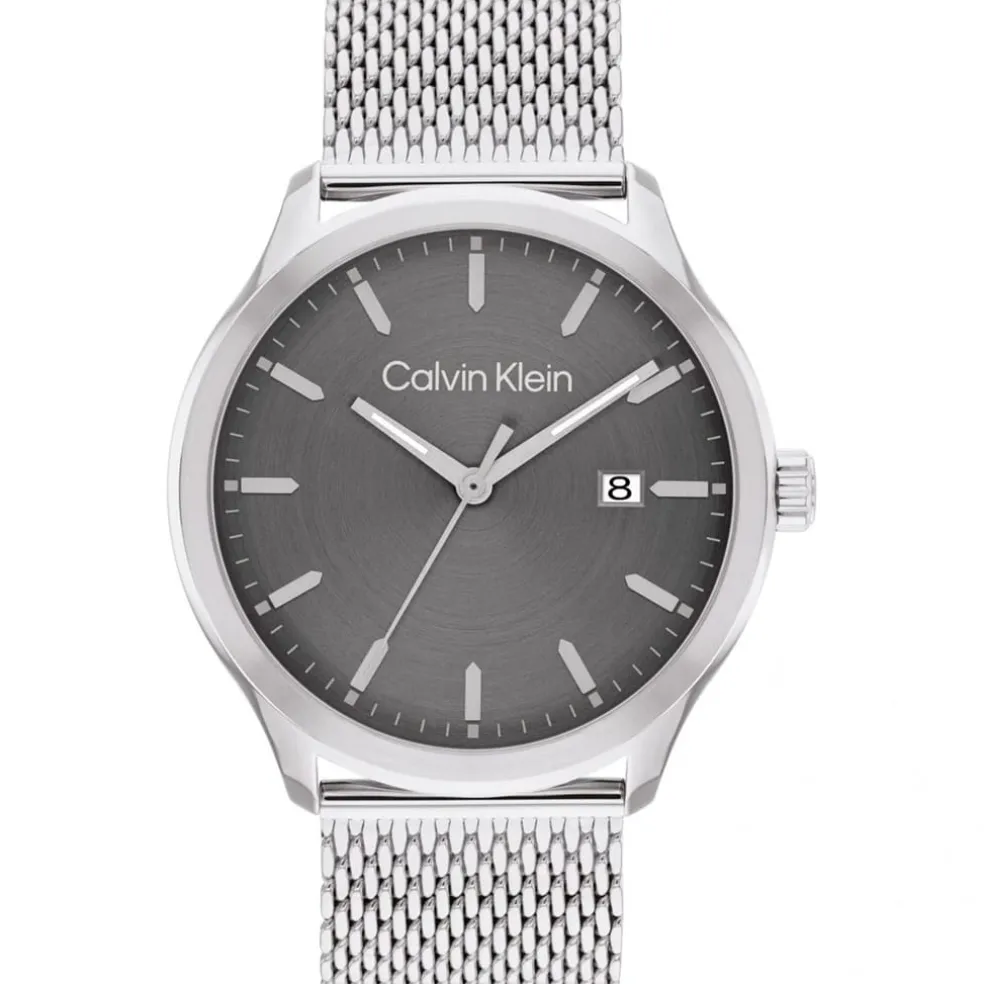 Calvin Klein watches and jewellery, features timeless, minimalist designs that highlight Calvin Klein’s globally-recognized aesthetic. Make this new metropolitan inspired watch part of your wardrobe to elevate your style this season.- 43mm- 3H- Architectural shaped links- Stainless steel sculped case- Grey IP radial brushed dial- Stainless steel mesh bracelet- 3 ATM