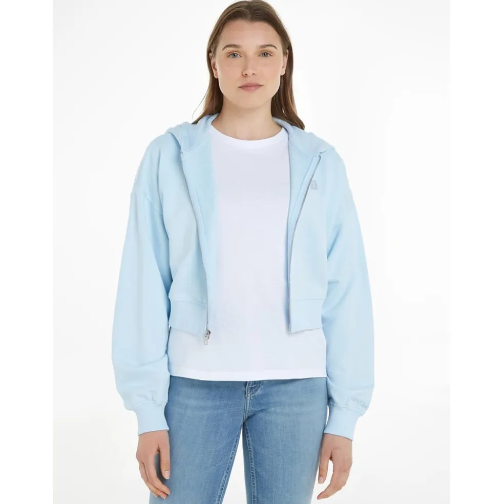 Get ready to elevate your casual ensemble with the Embroidered Badge Zip-Through Hoodie from Calvin Klein Jeans, a brand known for its accessible luxury and attention to detail. Whether you’re lounging at home, running errands, or meeting friends for a stylish brunch, this hoodie is designed for any casual occasion. Crafted from a luxurious cotton blend terry, this hoodie provides a super soft feel for long-lasting comfort. Its cropped fit and rib-knit cuffs and hem create a modern silhouette that flatters any figure. The hooded neckline adds a touch of casual elegance, while the metal zip fastening provides a sleek and stylish closure. Designed in an eye-catching keepsake blue colourway, this hoodie effortlessly blends sophistication with a fashion-forward look. To complete the design, the embroidered Calvin Klein Jeans badge on the chest serves as a symbol of the brand’s rich heritage and impeccable craftsmanship. Composition: 88% Regenerative Cotton 12%, Recycled Polyester. Machine