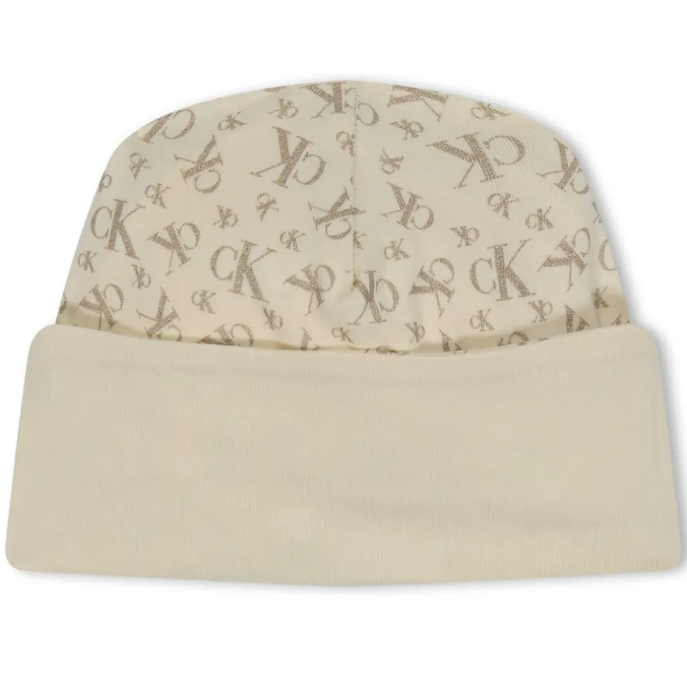 – This set includes a sleepsuit, hat, and bib, providing everything your baby needs for a cosy and fashionable lifestyle. The sleepsuit features long sleeves and a convenient button fastening on the front, making it effortless to dress your little one. With elastane hems, it offers a perfect fit and ensures maximum comfort for your baby’s movements. The button closure on the bib adds both practicality and style to this charming set. To complete the design, an all-over metallic logo print adorns the sleepsuit, hat, and bib, showcasing the iconic Calvin Klein Jeans logo in a mesmerizing fashion. Composition: 93% Cotton 7% Elastane. Machine washable, follow care instructions.