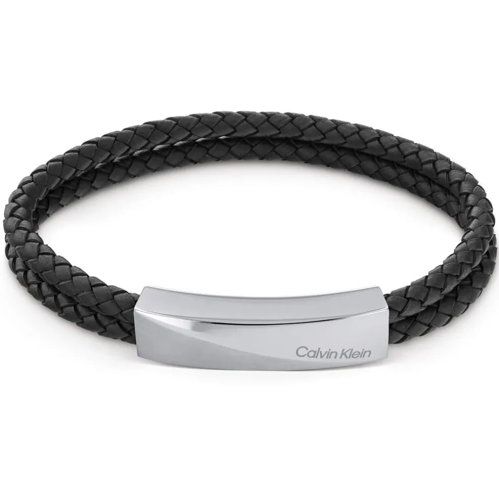 Calvin Klein Leather And Stainless Steel Double Strand Bracelet in Black