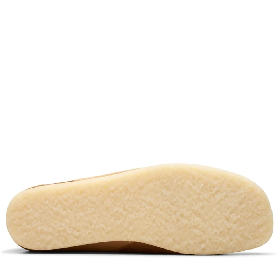 “Back with a spring/summer twist, our legendary Wallabee arrives in an ultra-wearable tan hue. Buttery suede uppers make a play on texture, while each iconic pair is complete with natural crepe soles, tonal fobs and laces.Premium tan suede uppersNatural rubber pebble crepe solesIncludes additional lace for versatile wearFinished with three Clarks Originals fobs”
