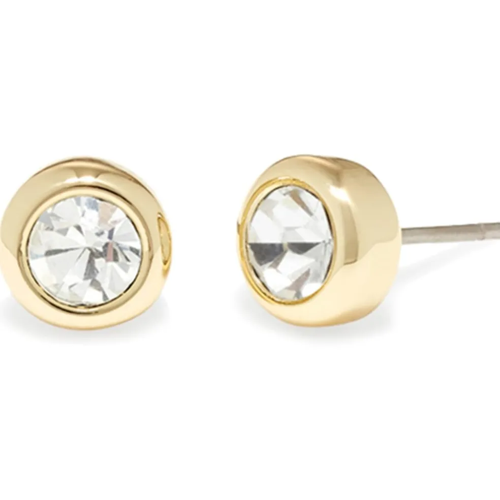 Coordinating jewelry set featuring everyday necklace and earrings. Necklace has a refined chain with a signature sculpted C pendant adorned with a minimal stone at center, paired with coordinating stone studs. Set includes one necklace and pair of earrings. Made from polished brass, titanium posts and glass. Includes COACH pouch.