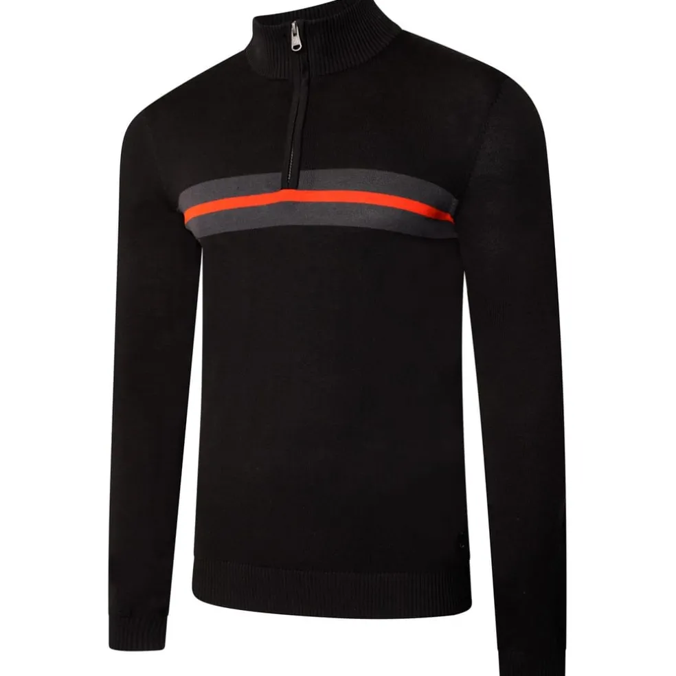 The Unite Us Sweater. A soft touch knitted sweater with cosy rib collar. Featuring high neck with 1/4 zip to let the air in when you need it. Stripe design detail will keep you stylish on the slopes. Layer under jackets to cut through the temperature drop. A simple, unbranded design means you can personalise with your own logos or branding.