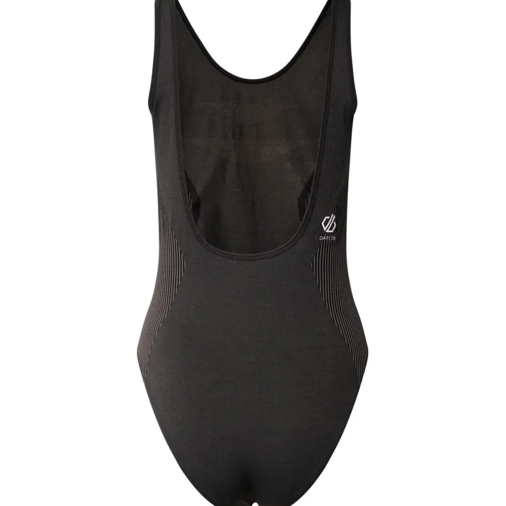 The Don’t Sweat It Swimsuit from Dare 2b. Made from recycled seamless knitted fabric with a scooped neck and back design. SeamSmart technology provides ultimate comfort as material sits smoothly on the skin. Contrast mesh detailing to flatter the figure.